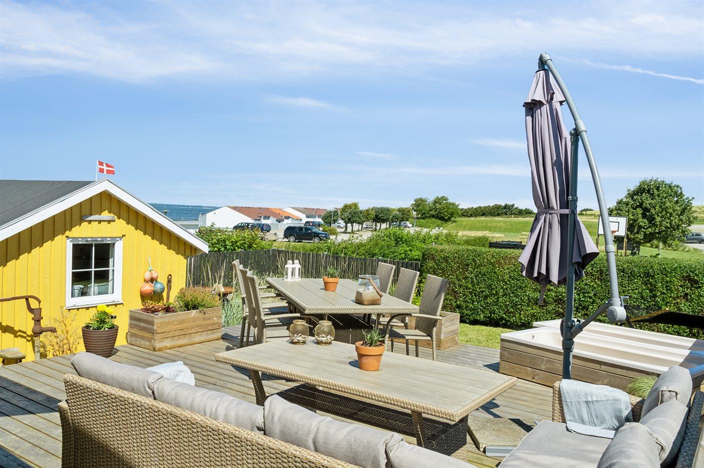 Charmantes Ferienhaus mit Meerblick am Dageløkke Marina in Dänemark, ideal für entspannte Tage am Wasser.