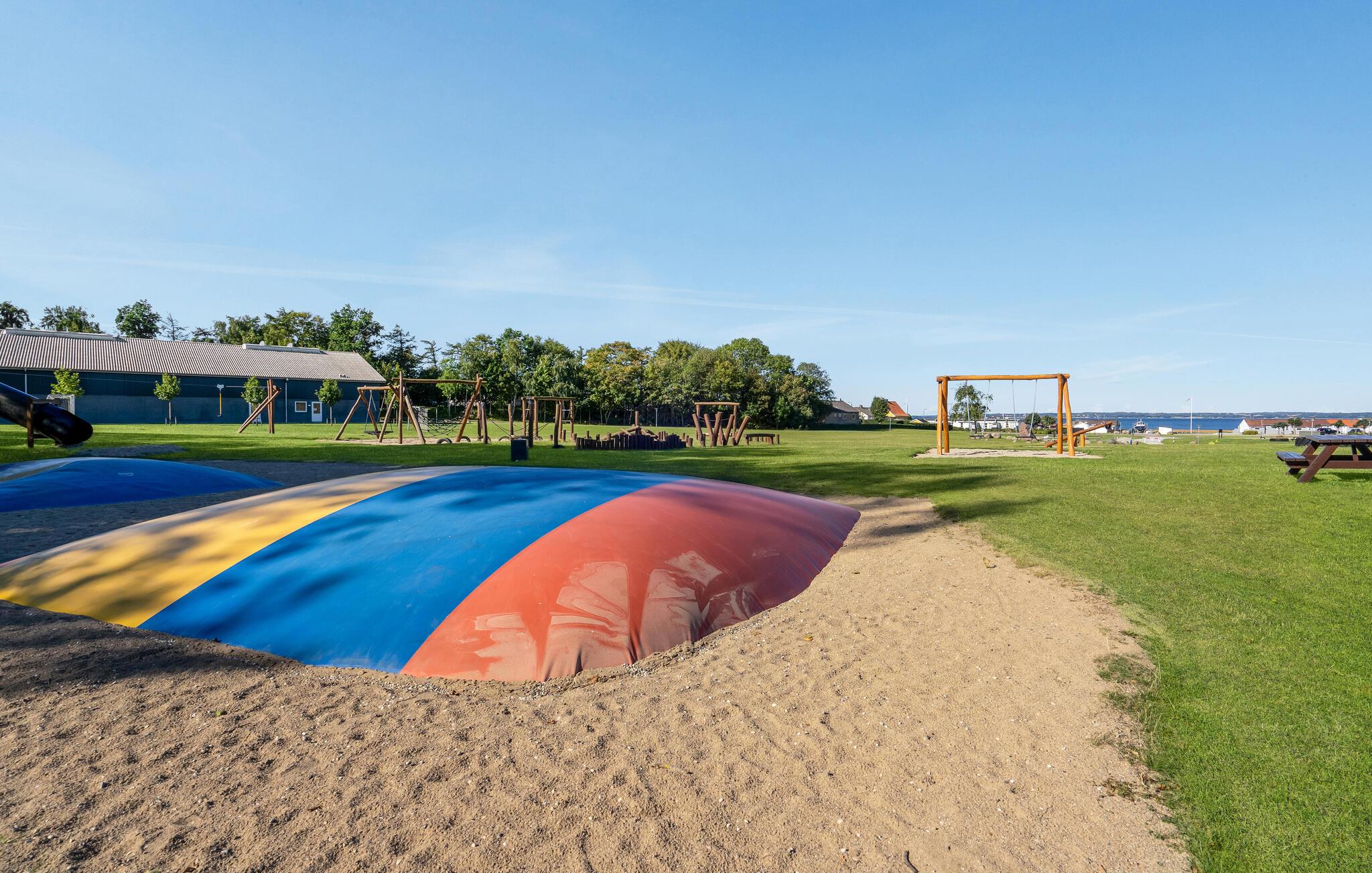 Das Haus liegt in der ersten Reihe zum See, von dem aus Sie angeln können, umgeben von schöner Natur, im nördlichen Teil von Langeland. Zum kinderfreundlichen Sandstrand mit ruhigem, flachem Wasser, wo Sie schwimmen, angeln und surfen können, sind es nur wenige hundert Meter. Das Ferienzentrum bietet Ihnen ein Aktivitätszentrum und einen gemeinsamen Fischputzplatz mit Putztisch. Auf der großen Liegewiese befindet sich ein Spielplatz mit Ballspielplatz und Hüpfburg, wo es auch eine Boulebahn und Minigolf gibt. Sie können auch Badminton spielen. Die meisten Einrichtungen sind nur im Sommer geöffnet. Sie können gerne Ihre eigenen Schläger und Bälle für den Sport mitbringen. Es gibt auch ein Restaurant nur 500 Meter vom Haus entfernt.