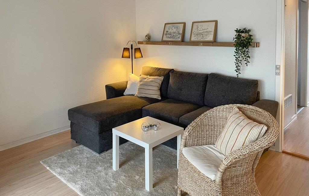 Hell und gemütlich: Ferienhaus nahe Meer mit Garten, Terrasse und moderner Ausstattung in Dageløkke.