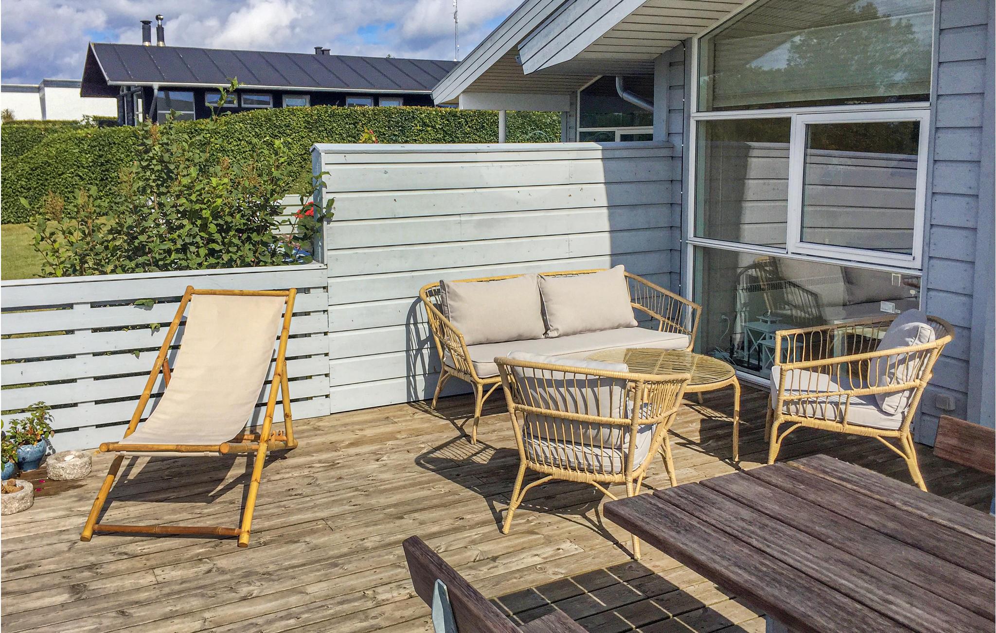 Schönes und gut eingerichtetes Doppelhaus im Dageløkke Feriencenter. Vom Wohnzimmer gelangen Sie auf eine herrliche Terrasse, von der Sie den Ausblick auf die Landschaft und einen künstlich angelegten See genießen können. Das Center liegt mitten in der wundervollen Natur von Nordlangeland und ganz nahe am kinderfreundlichen Sandstrand, der über ein ruhiges, seichtes Wasser verfügt. Hier stehen Ihnen auch mehrere, gemeinschaftliche Einrichtungen zur Verfügung, von denen die meisten gratis zu benutzen sind. Sie können z. B. in der Aktivitätshalle Badminton, Tennis (bitte Schläger mitbringen). Darüber hinaus stehen Ihnen ein Anglerraum mit einem Platz zum Ausnehmen der Fische zur Verfügung. Die meisten Einrichtungen sind nur von 1.5. - 1.9. zugänglich. Spielplatz mit Bolzplatz und Hüpfkissen aus dem Rasen, auf dem Sie auch Minigolf und Boule spielen können, wenn Sie selbst Bälle oder Kugeln mitbringen. Auf Langeland können Sie sich von guten Stränden, schönen Kulturlandschaften, Wäldern und reizvollen Dorfkirchen verzaubern lassen.