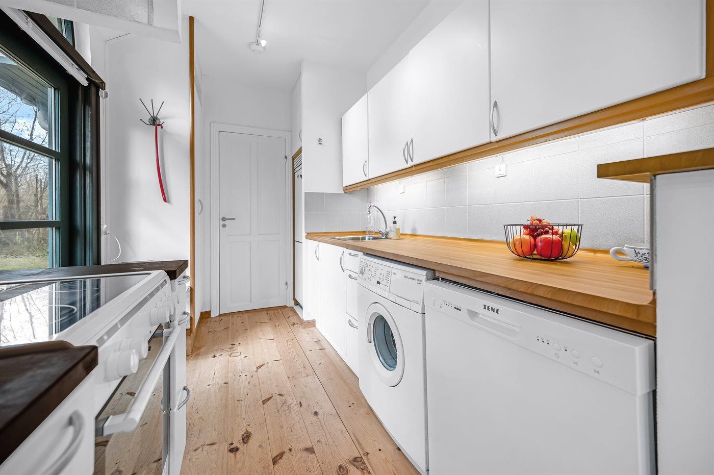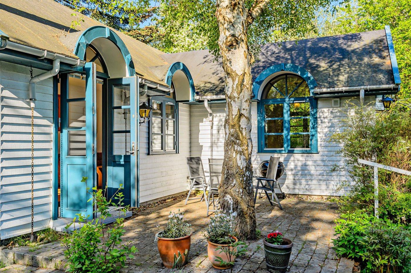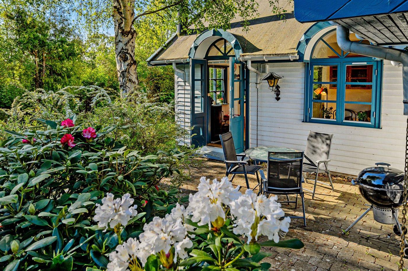 Das Haus ist hell und luftig mit viel Tageslicht und einer herrlichen sommerlichen Einrichtung. Das Wohnzimmer und der Essbereich sind offen gestaltet, und die Küche grenzt direkt daran an. Von hier aus gelangt man auf die Terrasse und in den Garten, wo mehrere gemütliche Ecken zum Verweilen einladen und man sowohl die Sonne genießen als auch Schatten finden kann. Es gibt außerdem eine Außensauna.