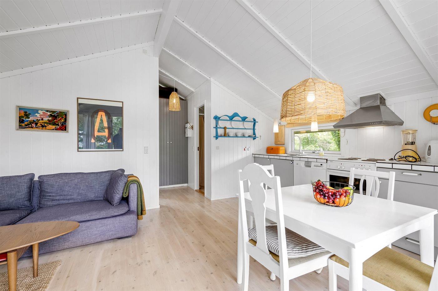 Dieses gemütliche Ferienhaus liegt nur 125 Meter vom Strand entfernt, und vom Haus und Grundstück bietet sich durch die Bäume ein kleiner Blick auf das Meer und die Halbinsel Reersø. Die Umgebung rund um Dalby Strand ist ruhig mit ländlichem Charme direkt vor der Tür.
