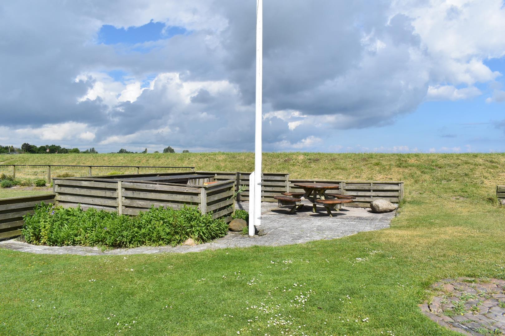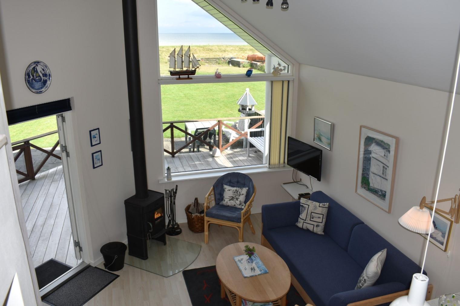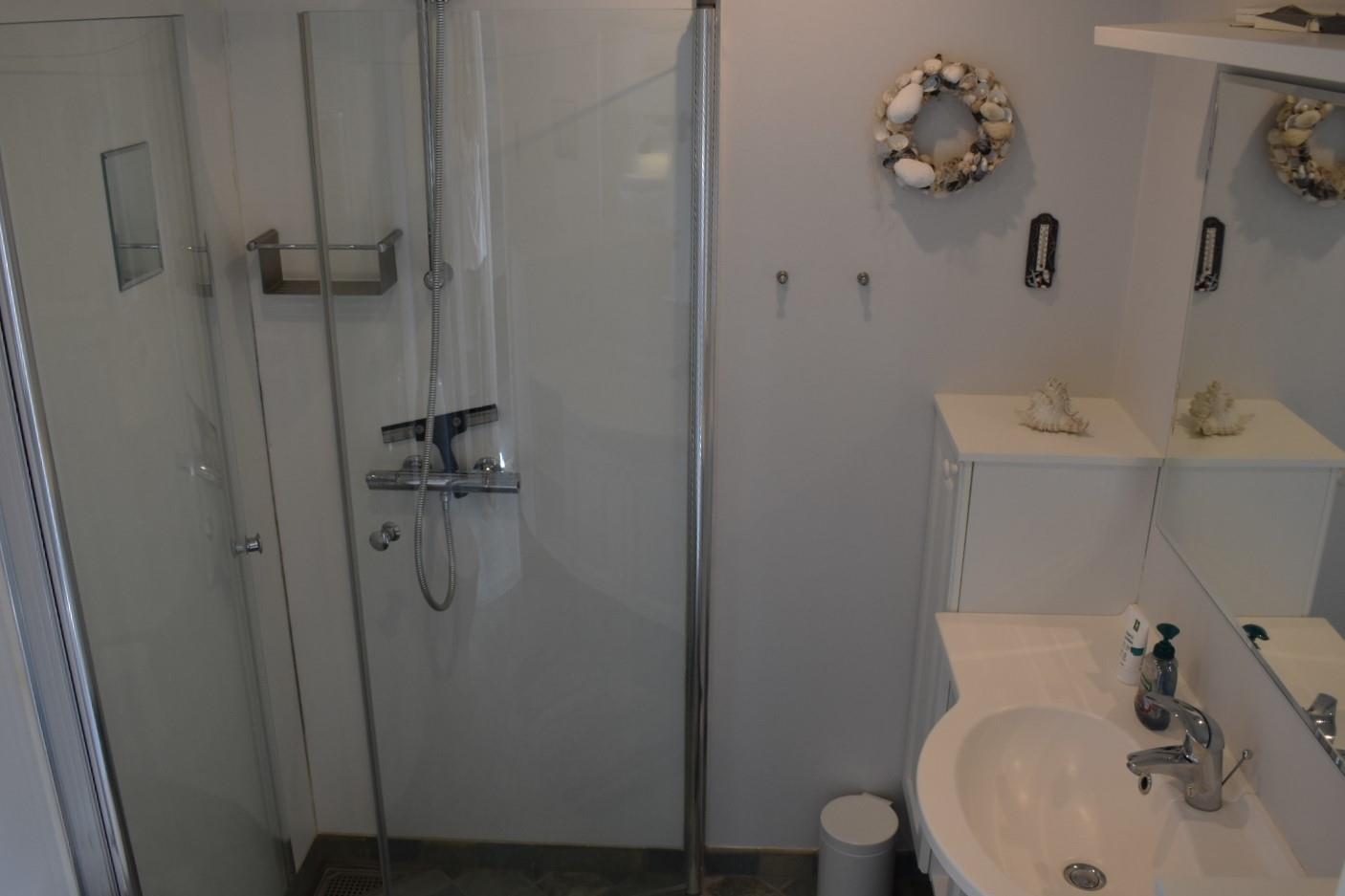 Vom Wohnzimmer aus geht es auf eine teilweise überdachte und geschützte Terrasse mit traumhaftem Blick aufs Wasser – ideal, um das Abendessen oder ein Glas Wein zu genießen. Vor dem Haus gibt es eine abgeschlossene Terrasse, perfekt für den Morgenkaffee in der Sonne. Eine abgeschirmte Außendusche sorgt dafür, dass man den Sand nach einem Strandtag schnell loswird.