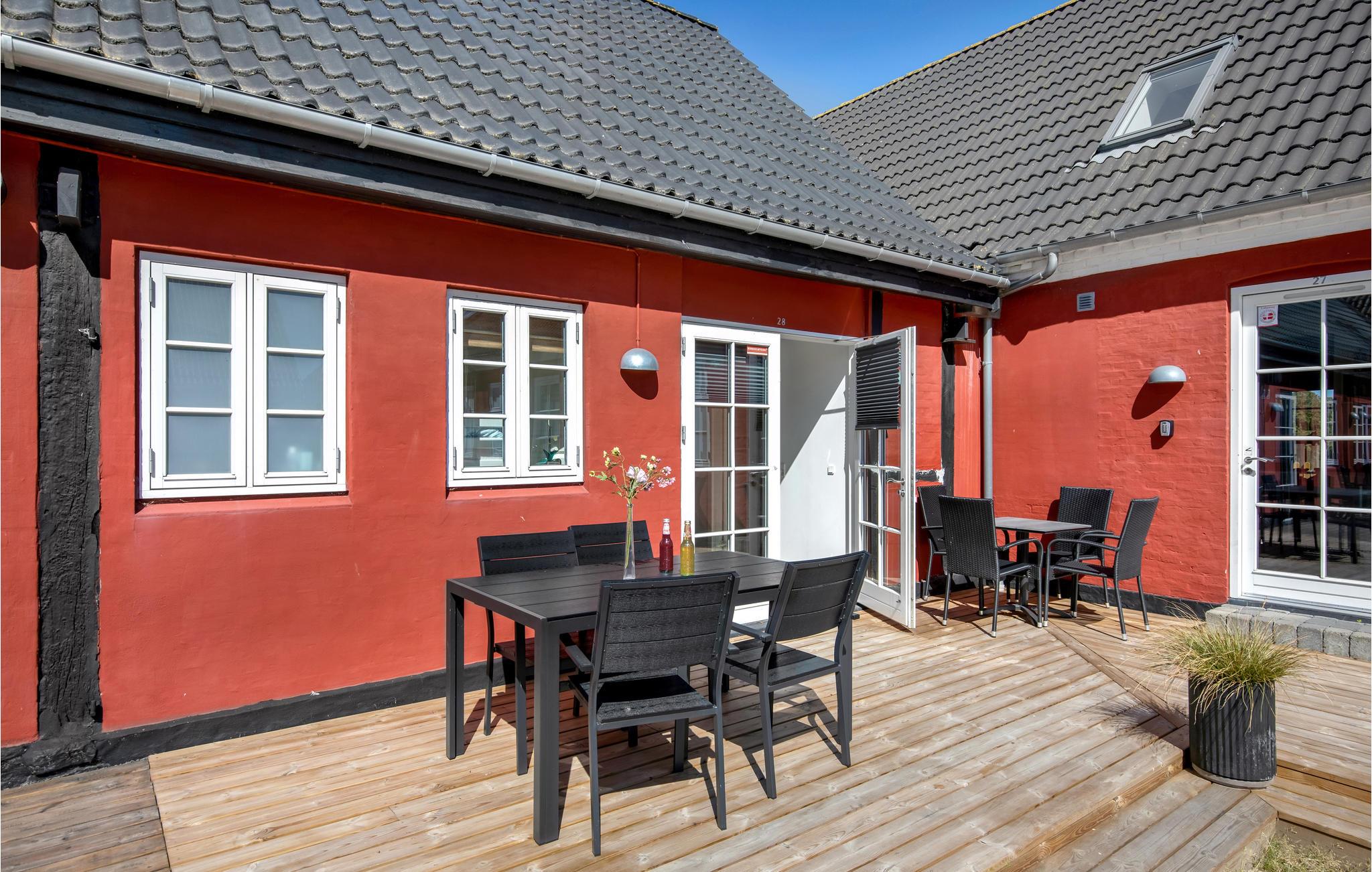 Dieses einladende Apartment mit 2 Schlafzimmern bietet Platz für bis zu 4 Gäste. Die Wohnung ist Teil der Ferienanlage Dams på Bakken, die u. a. einen großen Außenpool mit flachem Ende, ein großes Trampolin, Schaukeln, Sandkasten, Lagerfeuerplatz, Bouleplatz und Fußballplatz bietet. Die Wohnung verfügt über ein gemütliches Wohnzimmer mit TV und Radio/CD. Die offene Küche ist u. a. mit Mikrowelle, Cerankochfeld, Dunstabzugshaube und Essecke ausgestattet. Im Badezimmer gibt es eine komfortable Fußbodenheizung. Die Wohnung verfügt über eine eigene Terrasse mit bequemen Gartenmöbeln und Gasgrill, wo Sie sich herrlich entspannen und leckere Urlaubmahlzeiten zubereiten können. In der Wohnung gibt es kostenloses WLAN.