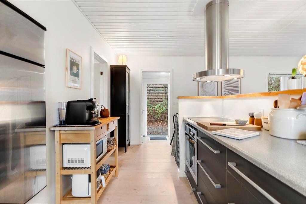 Willkommen in diesem gemütlichen, schön eingerichteten Ferienhaus mit der Adresse Fyrreklinten 28, das einen entspannten Rahmen für gelungene Urlaubstage nah am Meer bildet. Dein Ferienhaus begrüßt dich mit einer warmen, einladenden Atmosphäre. Unmittelbar nach dem ersten Betreten spürst du die ganz besondere Urlaubsstimmung, die dieses Ferienhaus umgibt. Im Haus stehen dir zwei ansprechende Schlafräume, ein funktionelles Badezimmer und ein offen kombinierter Küchen-, Wohn- und Essbereich zur Verfügung. In diesem schönen Raum bereitest du die Mahlzeiten zu, genießt das Beisammensein mit deiner Familie oder guten Freunden und entspannst dich nach einem Tag voller Erlebnissen auf dem Sofa. Alternativ kannst du mit deinen Lieben vergnügte Spieleabende am Esstisch verleben. Die Fenster gewähren einen hübschen Ausblick in den Garten und auf die umliegende Landschaft. Bei der Einrichtung des Urlaubsdomizils hat der Eigentümer großen Wert auf Komfort und Gemütlichkeit gelegt, sodass du dich vom ersten Moment an heimisch und wohl fühlst - perfekt für einen Kurzurlaub oder einen mehrwöchigen Aufenthalt.