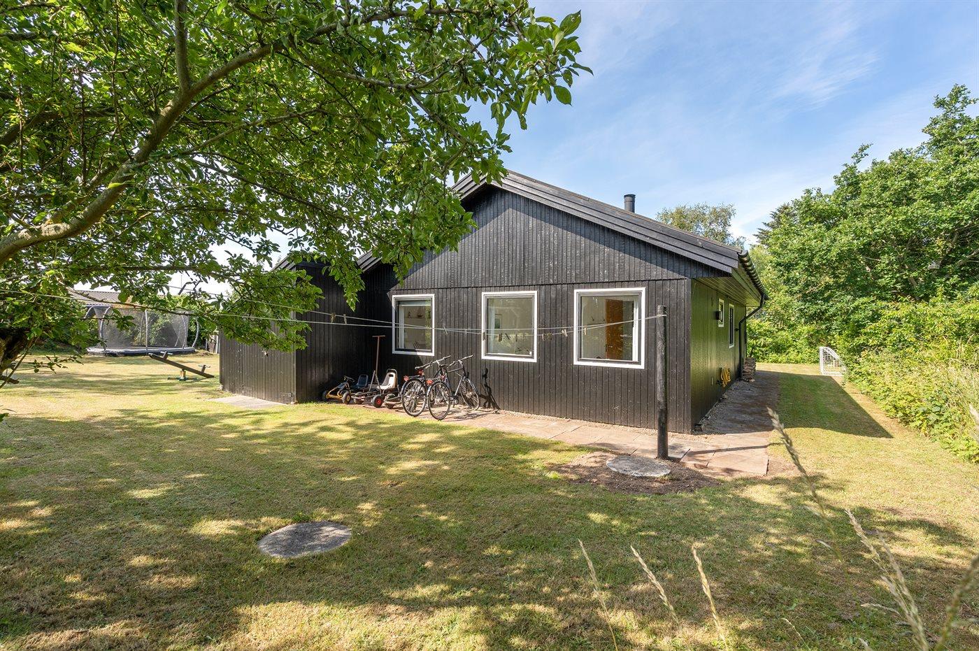 Die Ferienunterkunft liegt auf einem 1600 m² großen Naturgrundstück. Die Entfernung zum Meer beträgt 300 m. Die nächste Einkaufsmöglichkeit liegt 3000 m entfernt. Es steht ein offenes Terrassenareal zur Verfügung. Außerdem gibt es überdachte Terrasse. Geräteraum. Schaukel. Sandkasten. Kinderspielhaus. Trampolin.Wippe. Fußballtor.Lagerfeuerstelle. Es steht ein Grill zur Verfügung. Parkplatz auf dem Grundstück.