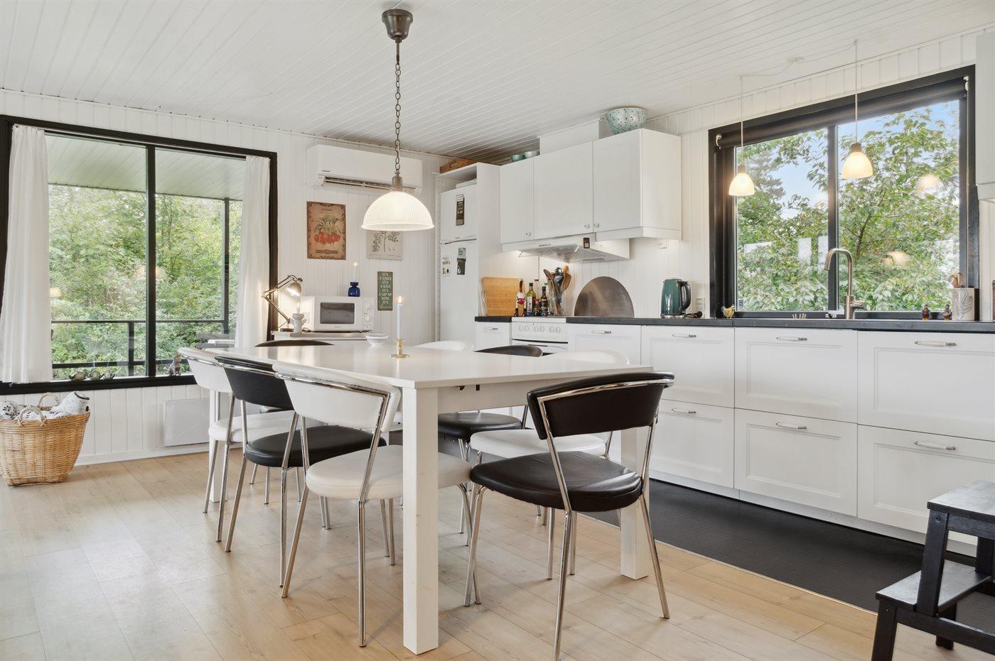Das Ferienhaus eignet sich für 6 Personen sowie 1 Kleinkind bis zu 3 Jahren. Die Ferienunterkunft hat eine Wohnfläche von 74 m² und wurde 1974 gebaut. 2021 wurde die Ferienunterkunft teilweise renoviert. Es ist erlaubt 1 Haustier mitzubringen. In der Ferienunterkunft ist eine energiesparender Luft zu Luft Wärmepumpe installiert. Die Ferienunterkunft ist mit Waschmaschine ausgestattet. Wäschetrockner. Tiefkühlmöglichkeit mit 44 Liter Nutzinhalt. Es gibt außerdem einen Kaminofen. Für die jüngsten Feriengäste sind 2 Kinderhochstühle vorhanden.