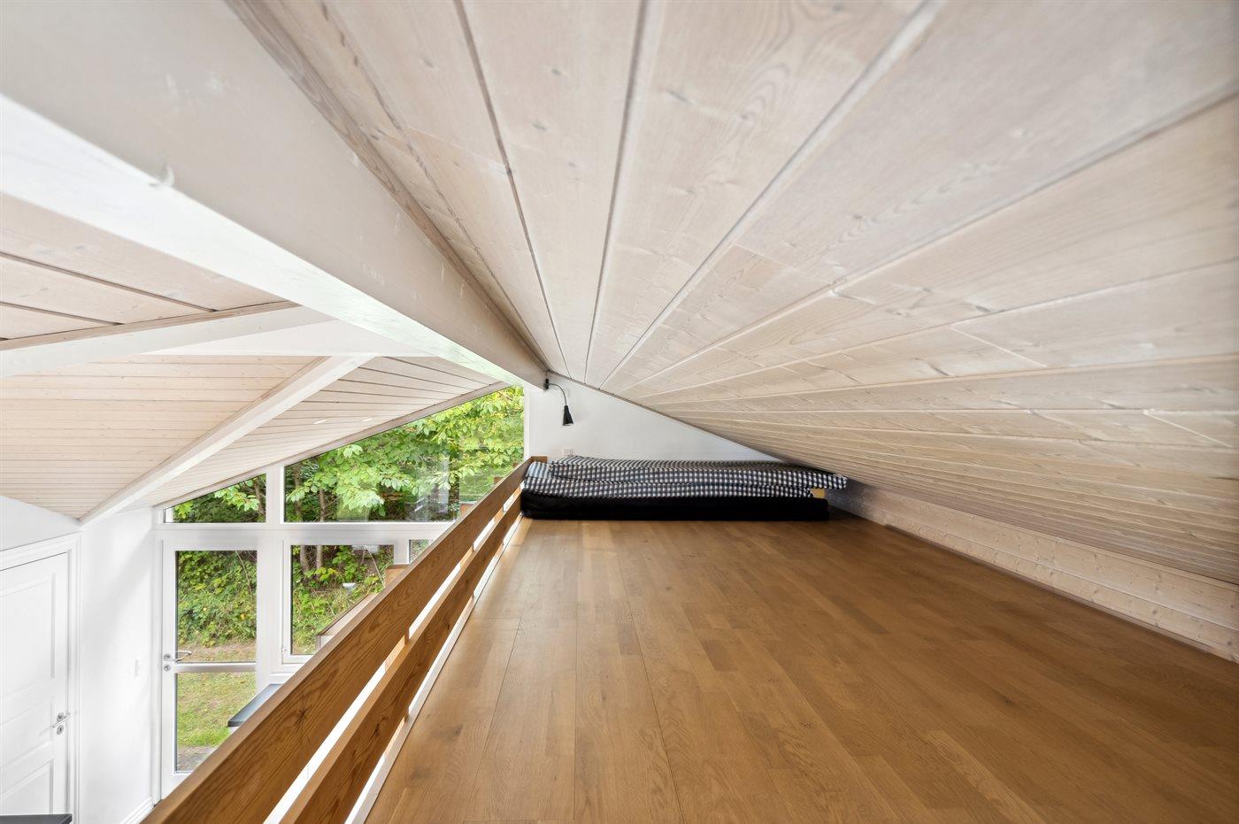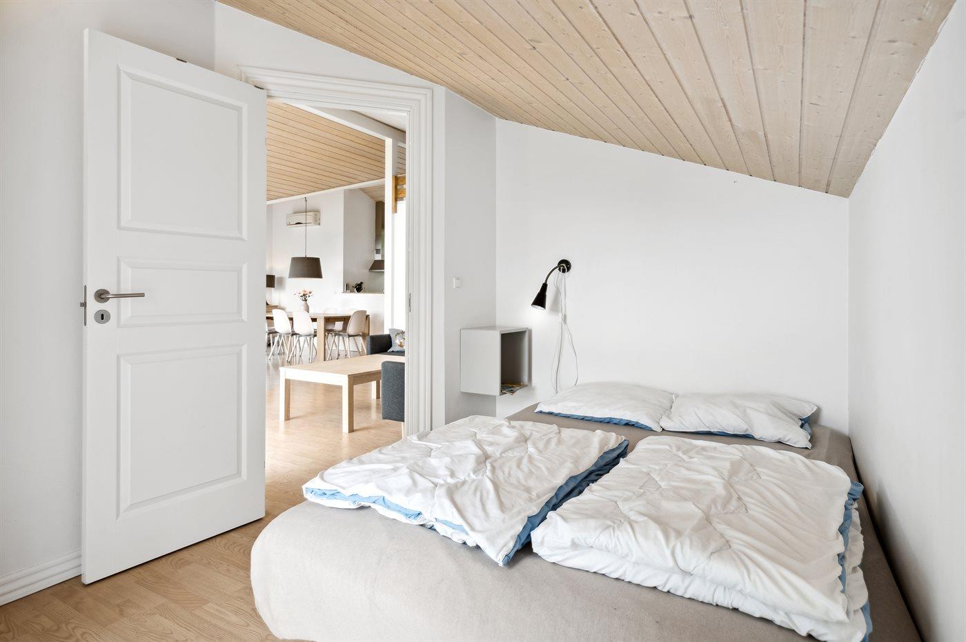 Die Schlafplätze verteilen sich auf 3 Schlafräume. 6 Schlafplätze in Doppelbetten. 2 Schlafplätze auf Matratzen. 2 von diesen Schlafplätzen befinden sich im offenen Obergeschoss.