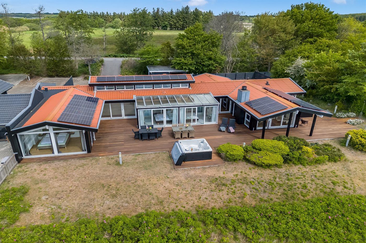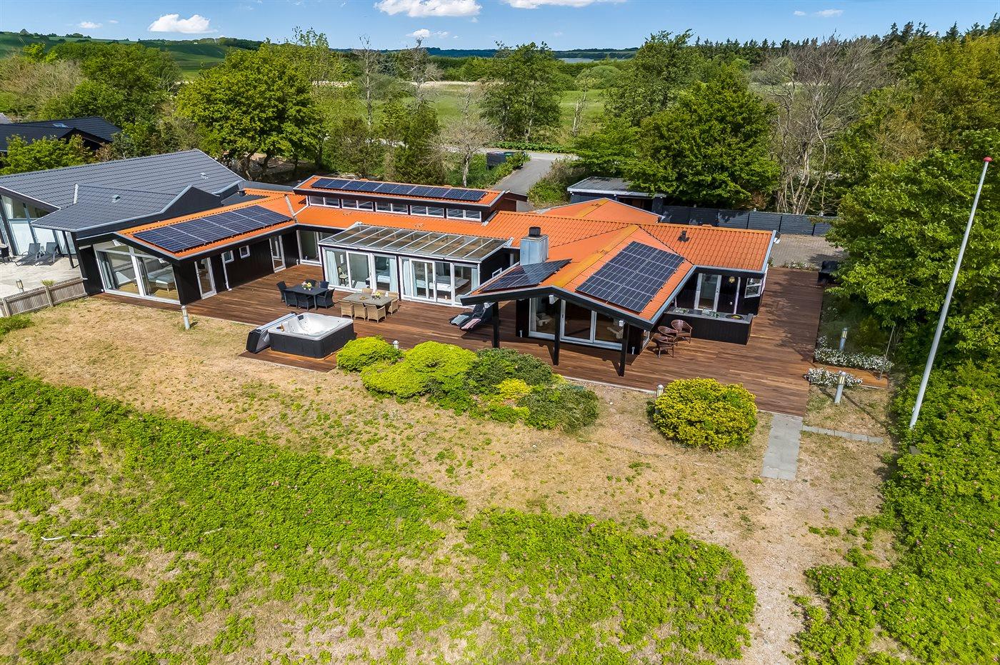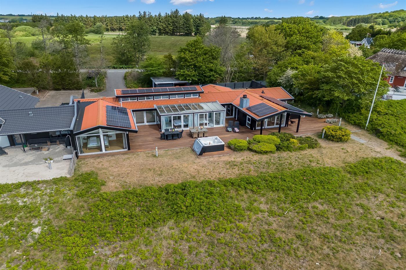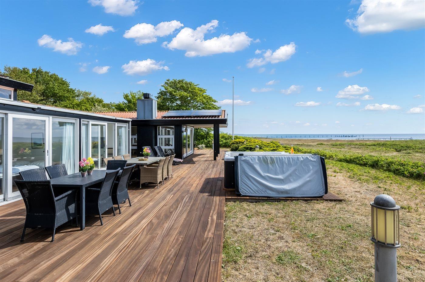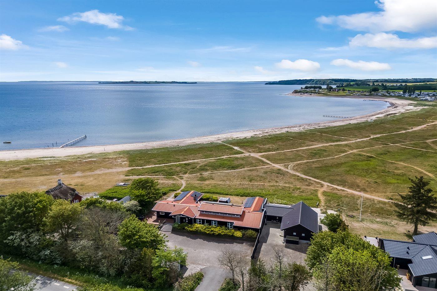 Genießen Sie ein einzigartiges Ferienhaus mit zwei Pools, Meerblick und Whirlpool direkt am kinderfreundlichen Strand von Diernæs.