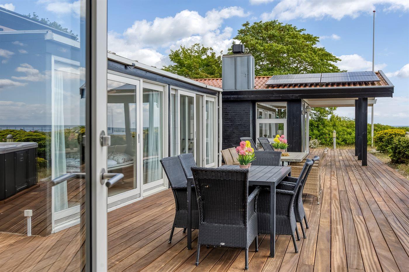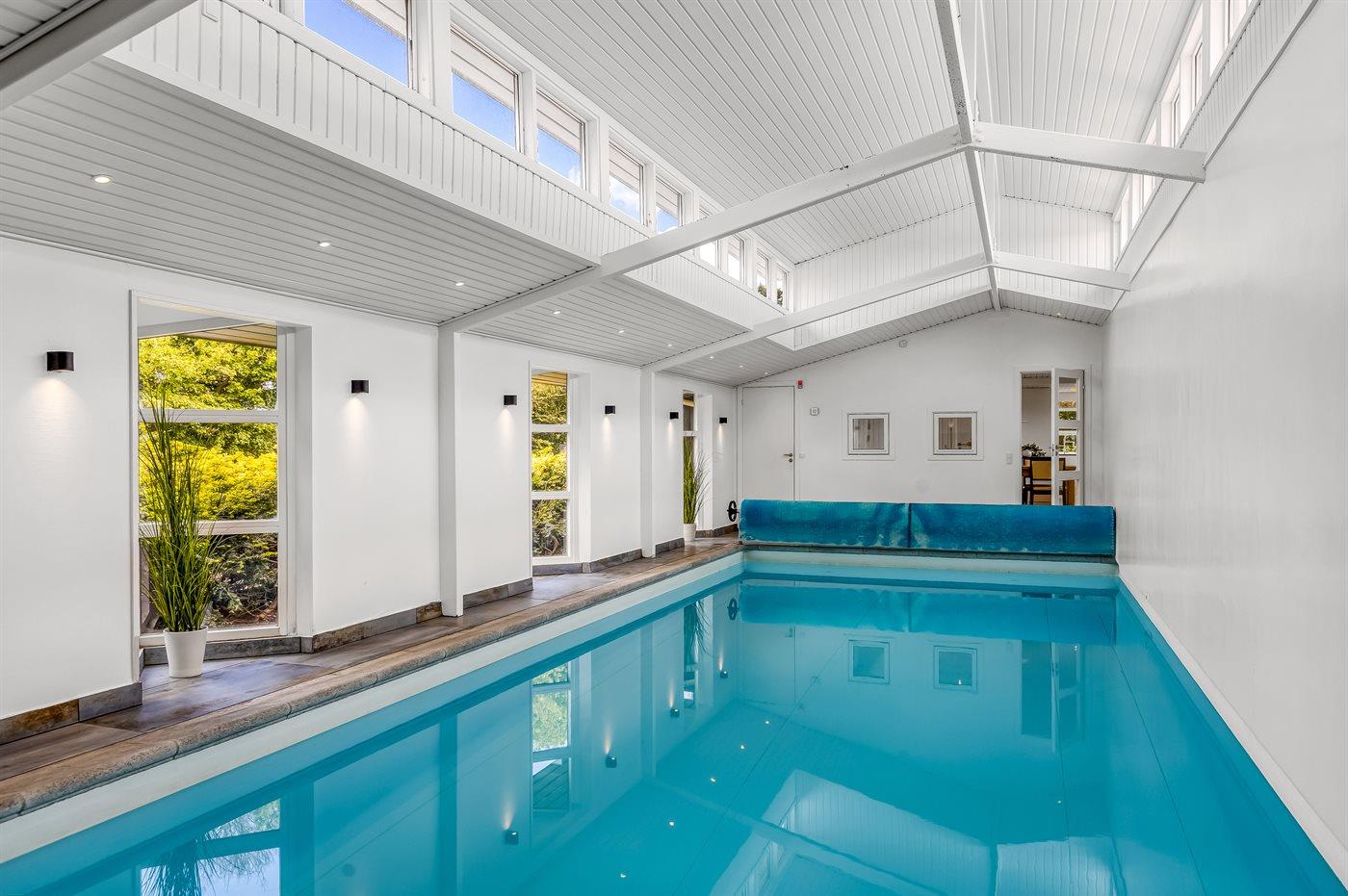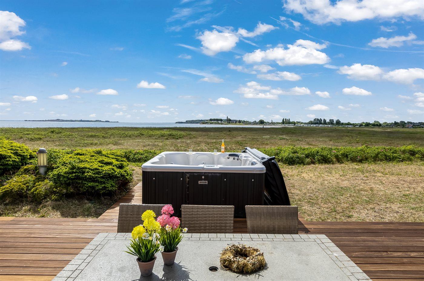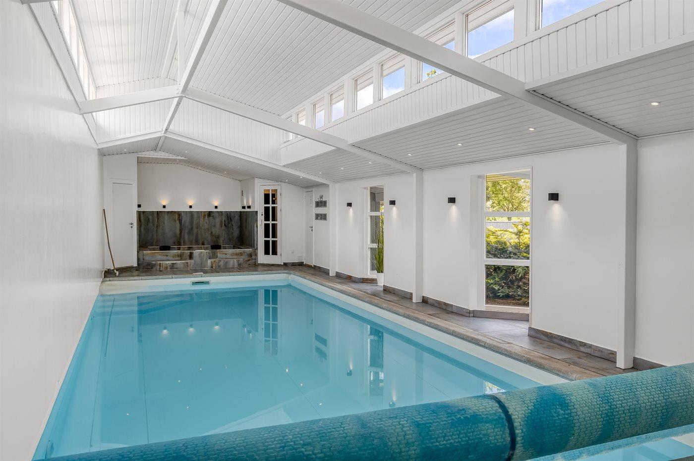 Genießen Sie ein einzigartiges Ferienhaus mit zwei Pools, Meerblick und Whirlpool direkt am kinderfreundlichen Strand von Diernæs.