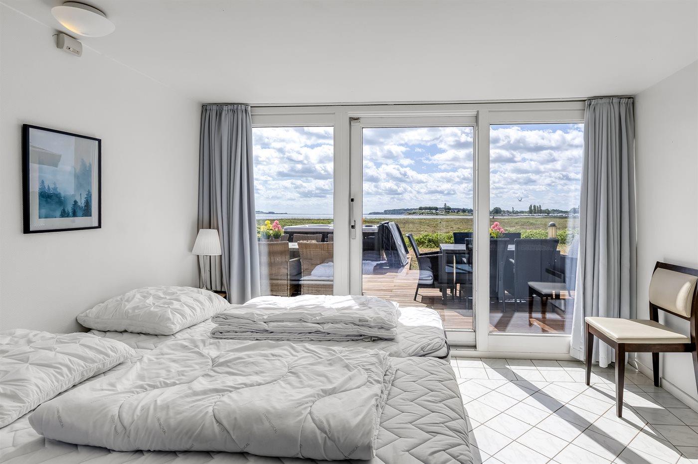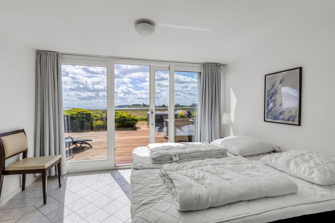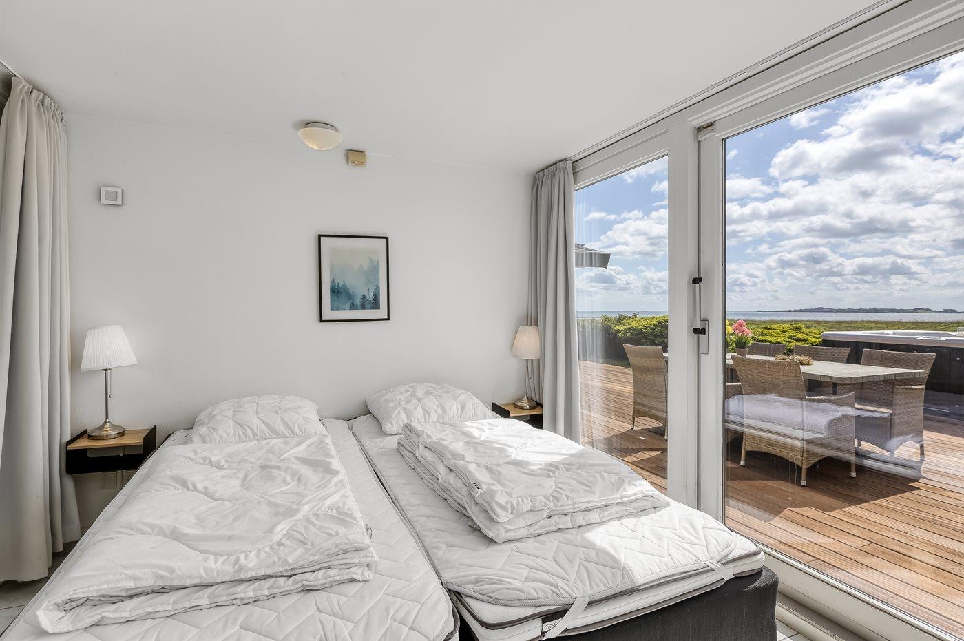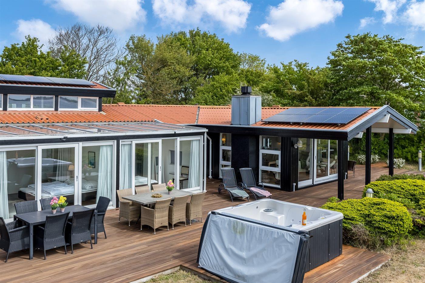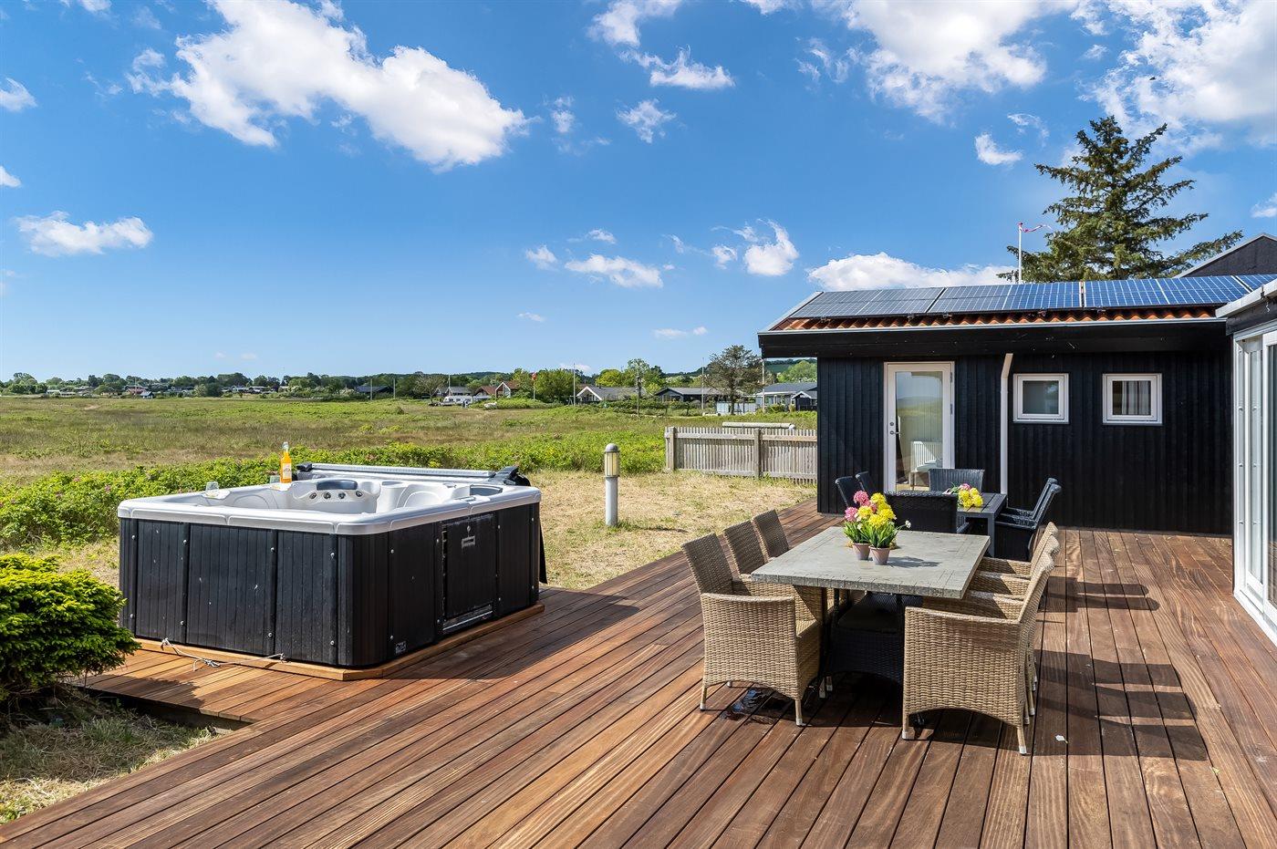 Genießen Sie ein einzigartiges Ferienhaus mit zwei Pools, Meerblick und Whirlpool direkt am kinderfreundlichen Strand von Diernæs.