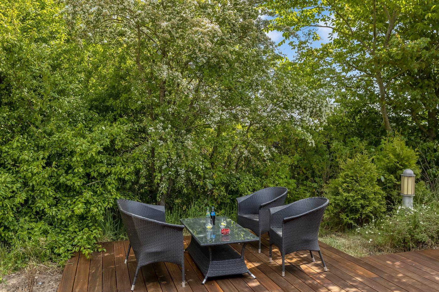 Die Ferienunterkunft liegt auf einem 1200 m² großen Naturgrundstück. Die Entfernung zum Meer beträgt 30 m. Die nächste Einkaufsmöglichkeit liegt 4500 m entfernt. Es steht ein offenes Terrassenareal zur Verfügung. Außerdem gibt es überdachte Terrasse. Die Entfernung zu einem Spielplatz beträgt 300 m. Außendusche. Es steht ein Grill zur Verfügung. Parkplatz auf dem Grundstück.
