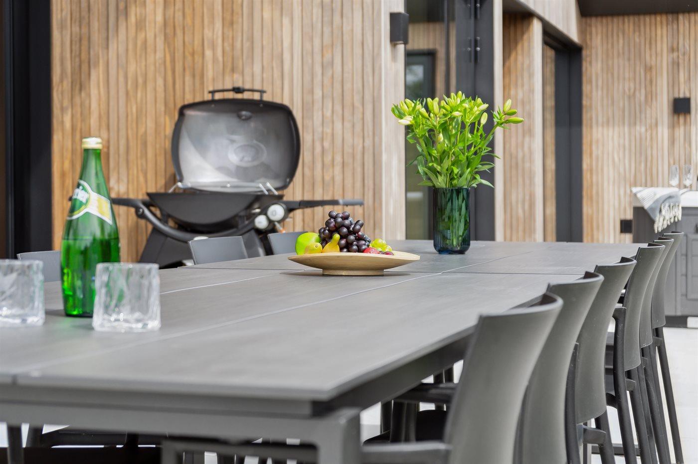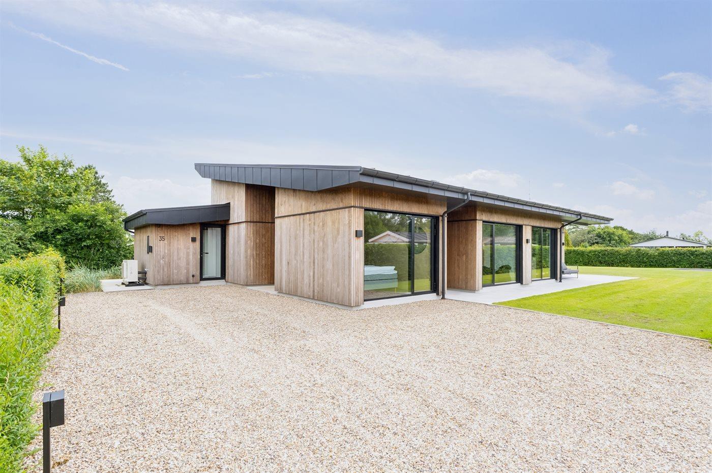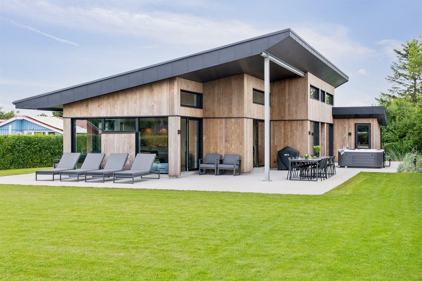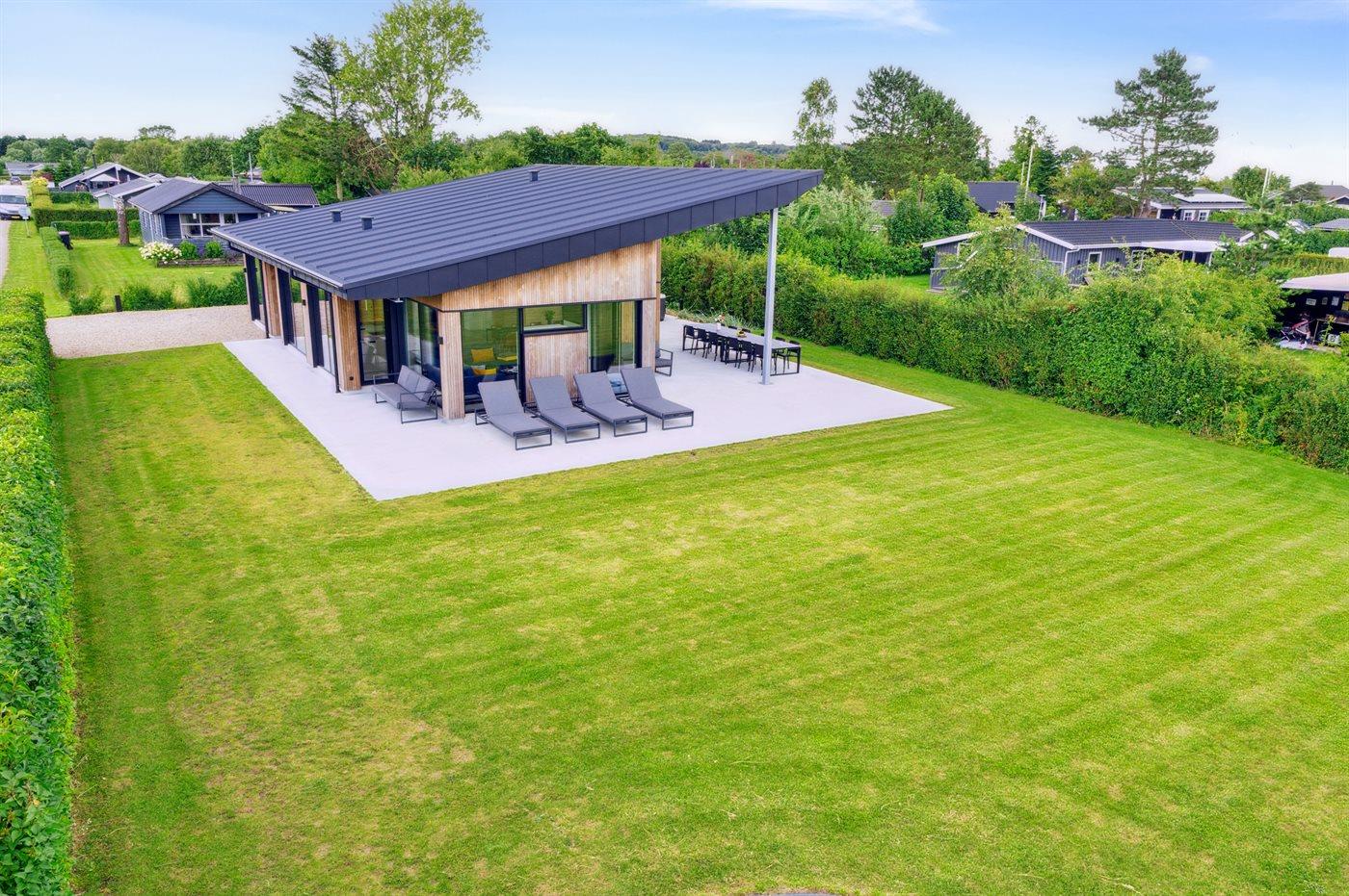 Die Ferienunterkunft liegt auf einem 800 m² großen Naturgrundstück. Die Entfernung zum Meer beträgt 250 m. Es gibt einen Badesteg in der Nähe. Die nächste Einkaufsmöglichkeit liegt 4000 m entfernt. In einem Abstand von 12000 m gibt es einen Golfplatz. Es steht ein offenes Terrassenareal zur Verfügung. Außerdem gibt es überdachte Terrasse. Trampolin. Die Entfernung zu einem Spielplatz beträgt 200 m. Außensauna (infrarot). Außendusche. Es steht ein Grill zur Verfügung. Es ist ein Ladestecker für Elektroautos installiert. Ladestecker Typ 2. Mit einer Ladeleistung von 11 kW. Parkplatz auf dem Grundstück.