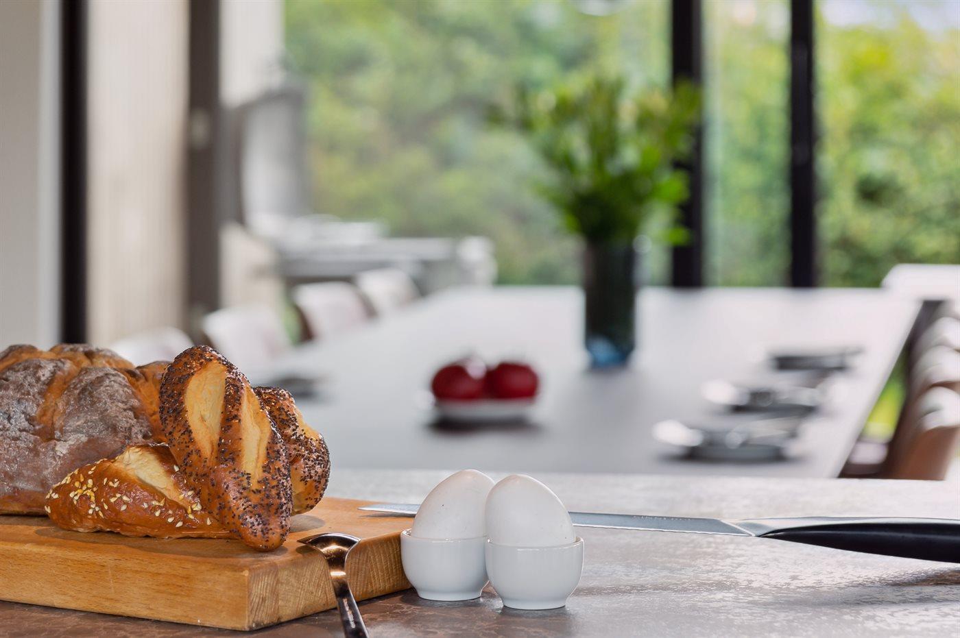 Die Küche ist mit Kühlschrank ausgestattet. Außerdem gibt es 4 Induktions-Kochzonen, Umluftofen, Mikrowelle sowie Geschirrspüler.