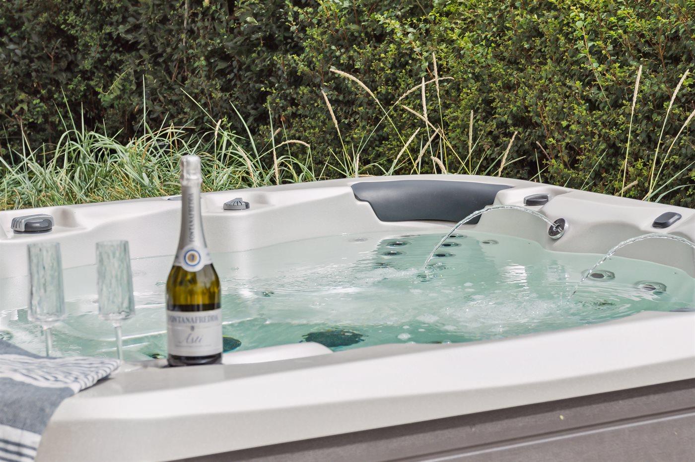 Im Außen-Durchlauf-Whirlpool für 6 Personen können Sie sowohl die Unterwassermassage als auch den Aufenthalt im Freien genießen.