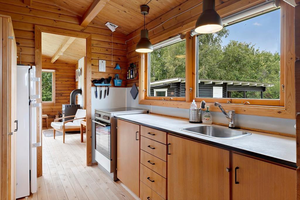 Das klassische Holzhaus von 58 m2 steht seit 1972 in der schönen Natur. Trotz regelmäßiger Renovierungen hat es seinen ursprünglichen Charme und seine freundliche Atmosphäre bewahrt, so dass es zu den Häusern gehört, in denen man sich sofort zu Hause fühlt. Holen Sie also ruhig Ihr Strickzeug oder Ihren Krimi heraus, kochen Sie sich eine gute Tasse Kaffee und machen Sie sich bereit für einen ruhigen Nachmittag im Wohnzimmer neben dem Holzofen. Eines der modernen Merkmale des Hauses ist der Fernseher mit Chromecast, den Sie im Wohnzimmer finden können. Auf der anderen Seite gibt es kein W-LAN, so dass Sie mit Ihrem eigenen Mobilfunknetz auskommen müssen - oder Sie nutzen es als willkommene Gelegenheit, um ein paar Tage von den Nachrichten abzuschalten. Ein schönes Badezimmer gehört ebenso zur Ausstattung wie drei gemütliche Schlafzimmer.