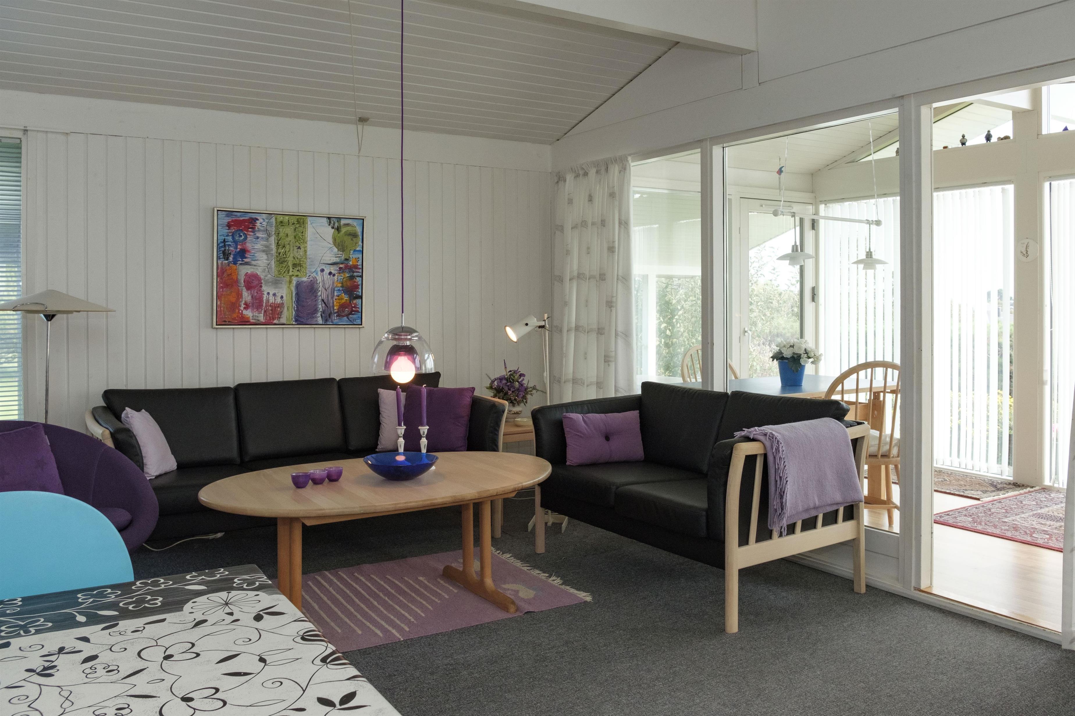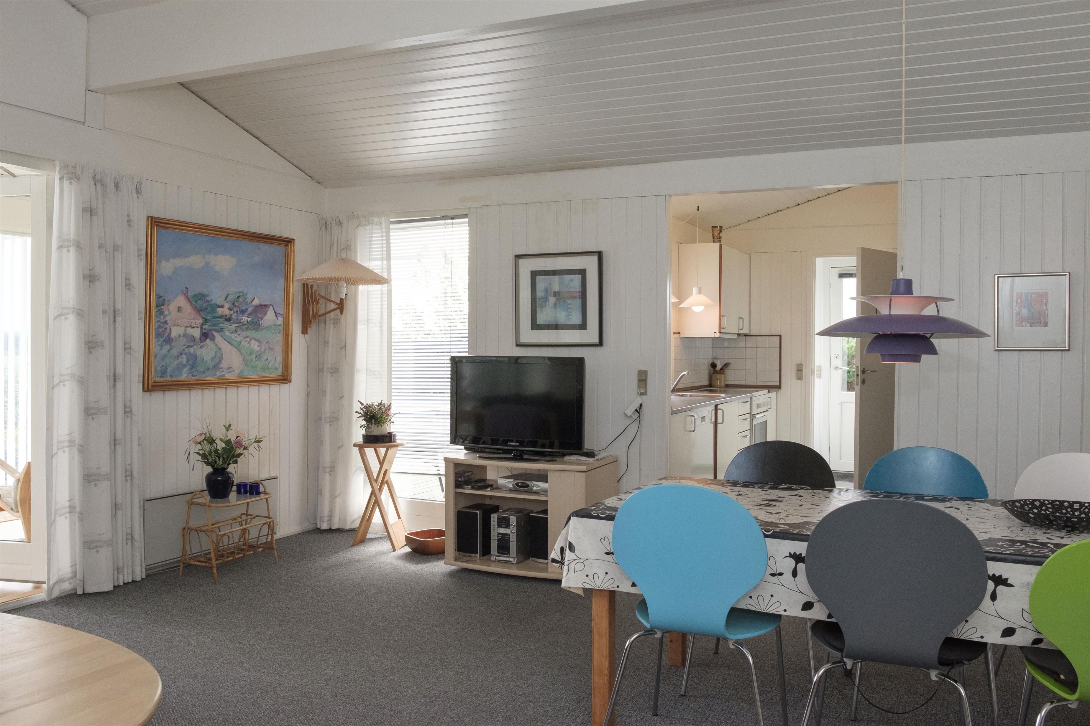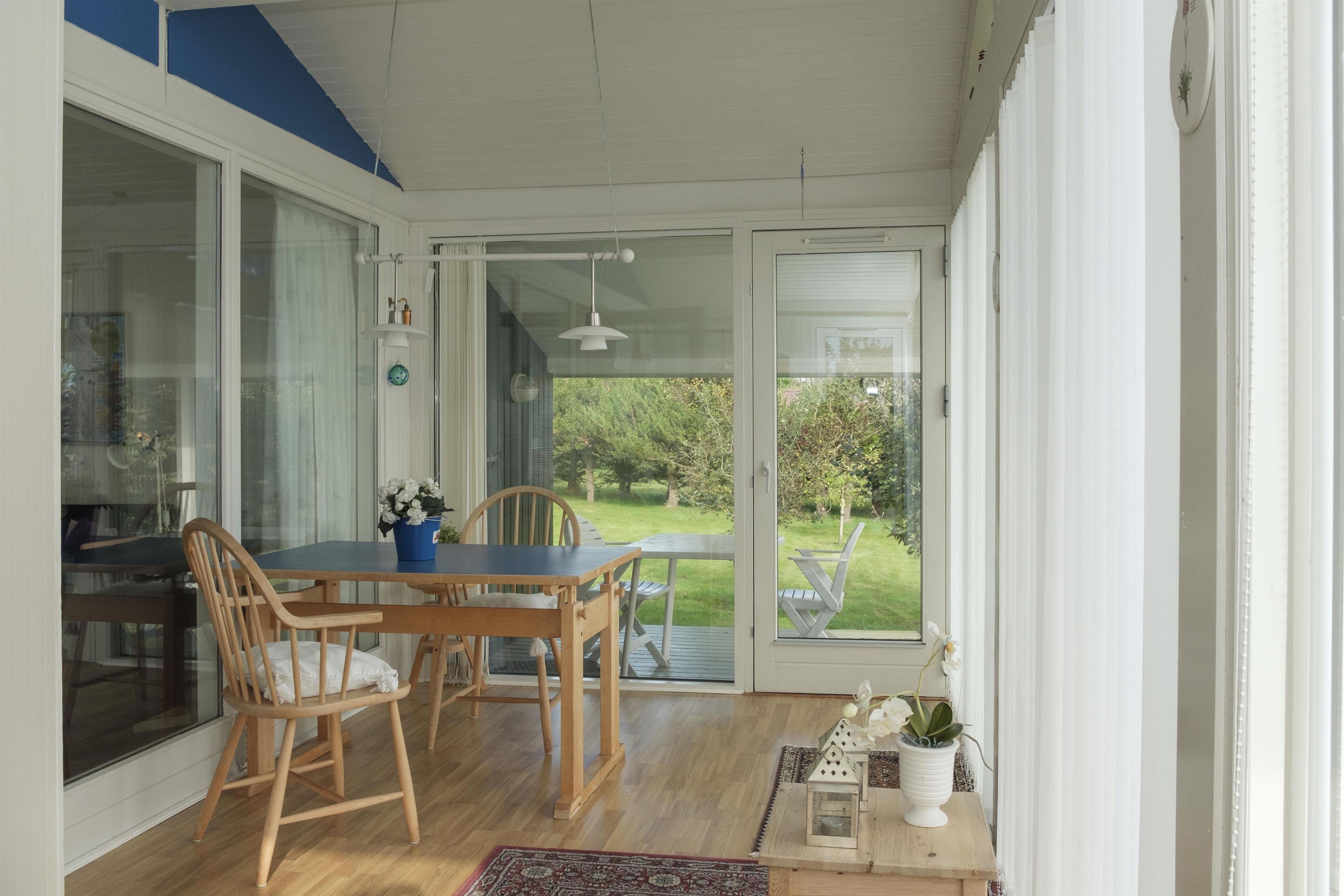Älteres, gut geplegtes Ferienhaus in schöner Lage und ruhiger Umgebung in der Nähe eines kinderfreundlichen Strandes. Der Hausbesitzer ist sehr engagiert in diesem Haus und daher präsentiert sich das Haus sehr gut gepflegt und mit Sinn für Details. Großer Wintergarten mit Zugang zur schönen Terrasse mit Gartenmöbeln und Grill sowie etwas Meerblick. Gemütliches Wohnzimmer mit TV mit SAT-Anlage, Stereoanlage mit CD und Radio. Neue Küche mit Ceranfeld, Geschirrspüler, Mikrowelle und Kühlschrank mit kleinem separaten Gefrierfach. Neues Badezimmer mit Dusche. Die Schlafplätze verteilen sich auf 3 Schlafzimmer: 1 mit Schlafcouch, 1 mit Einzelbett und 1 mit Doppelbett.