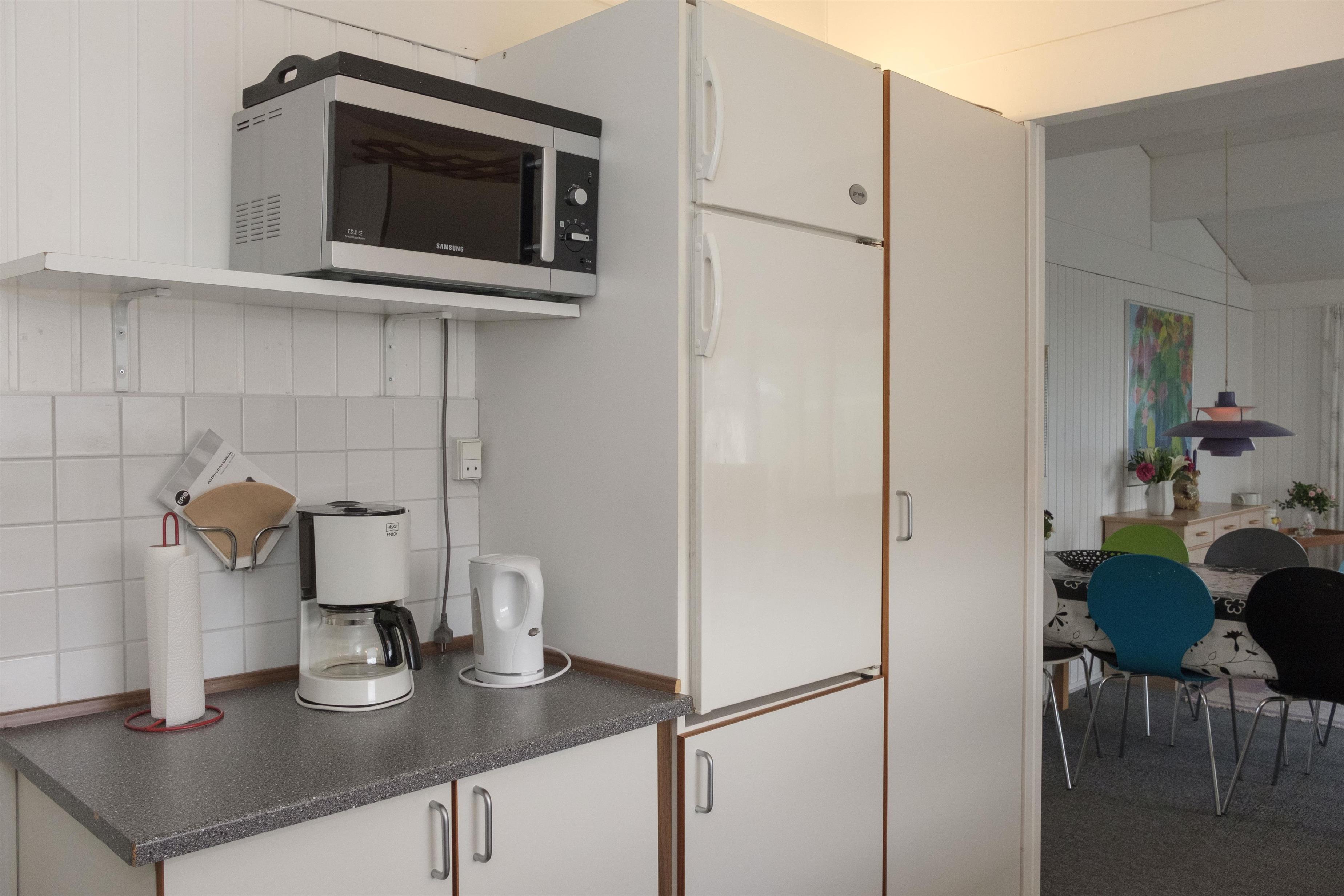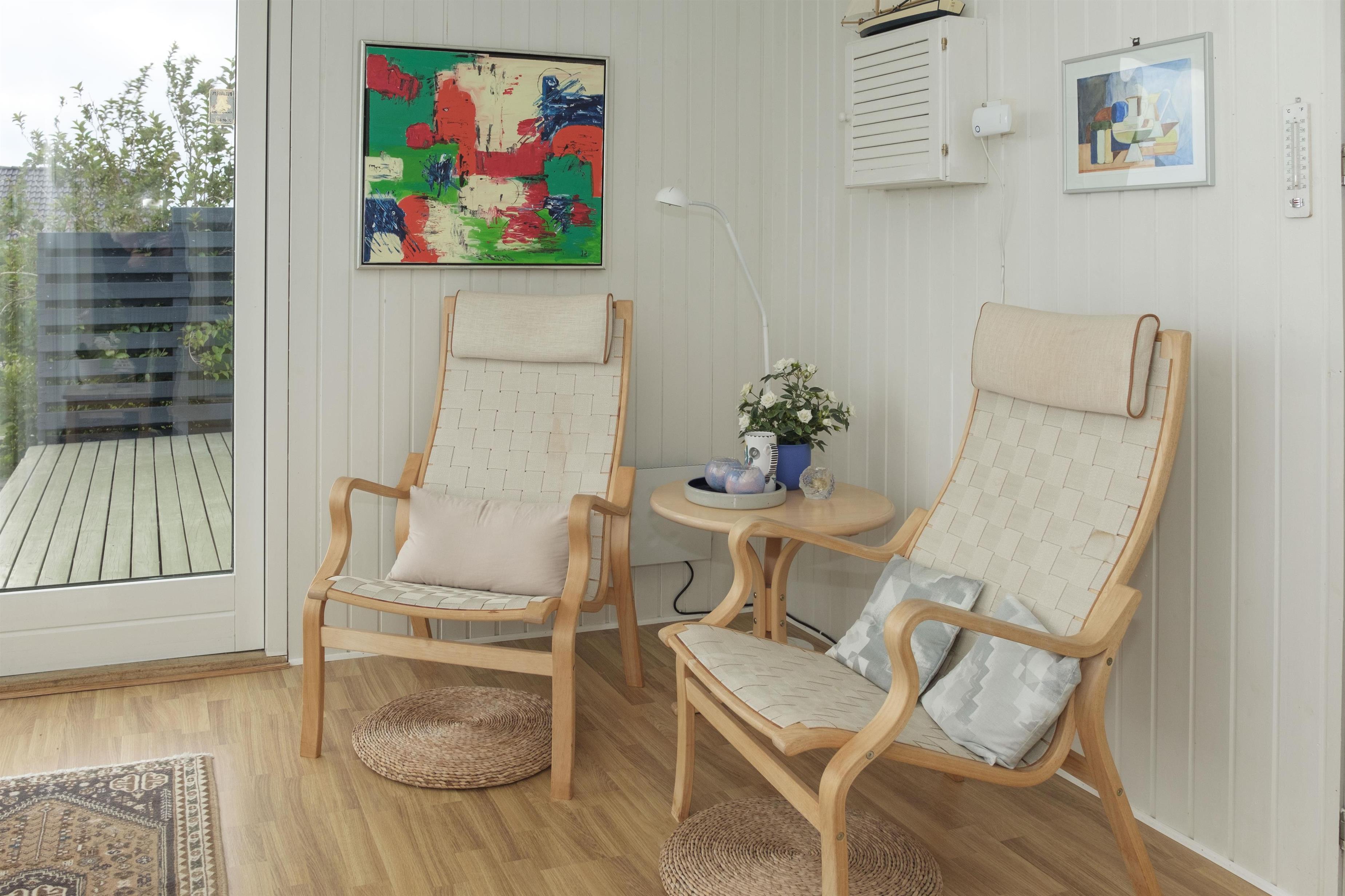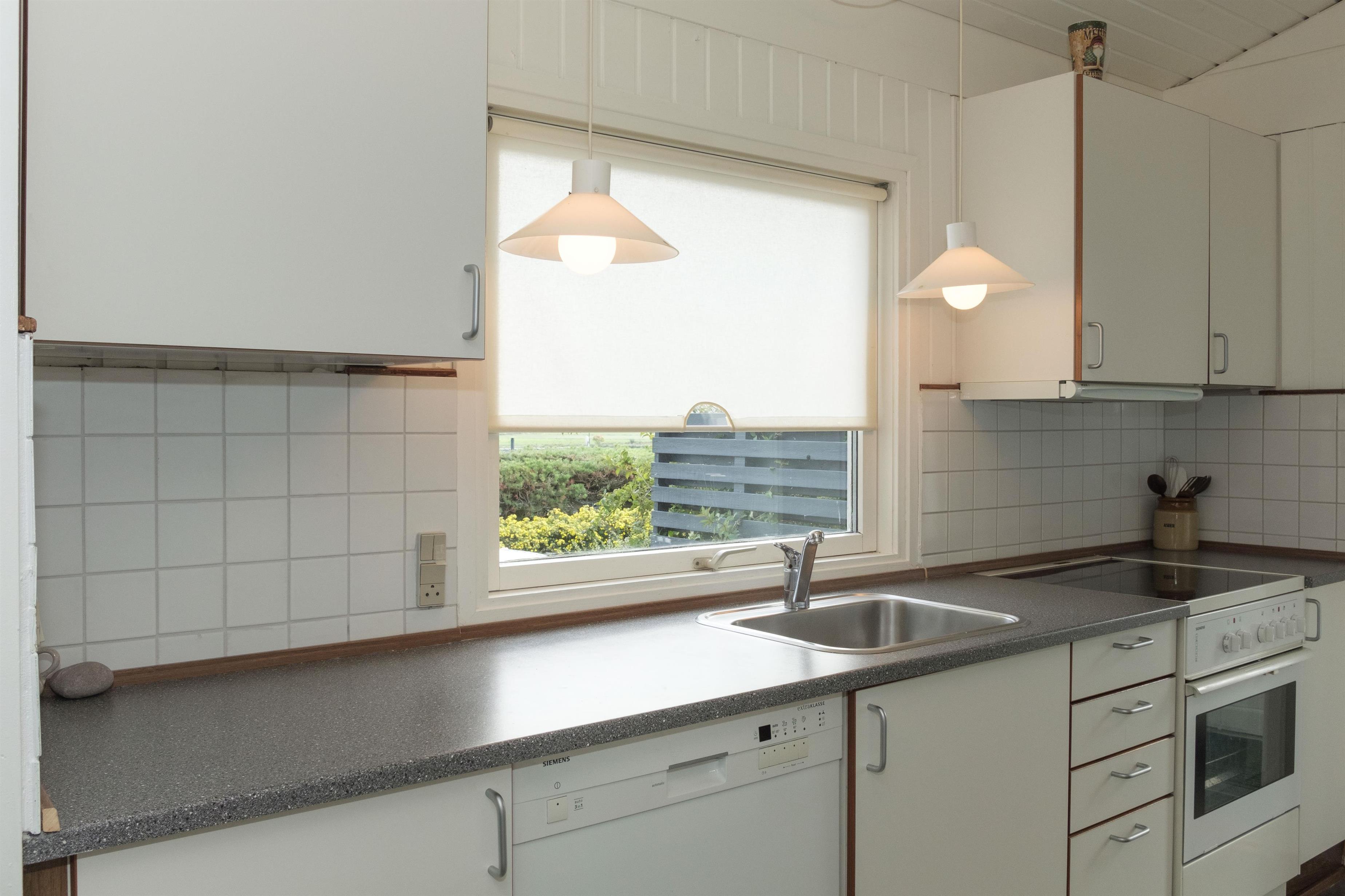 Älteres, gut geplegtes Ferienhaus in schöner Lage und ruhiger Umgebung in der Nähe eines kinderfreundlichen Strandes. Der Hausbesitzer ist sehr engagiert in diesem Haus und daher präsentiert sich das Haus sehr gut gepflegt und mit Sinn für Details. Großer Wintergarten mit Zugang zur schönen Terrasse mit Gartenmöbeln und Grill sowie etwas Meerblick. Gemütliches Wohnzimmer mit TV mit SAT-Anlage, Stereoanlage mit CD und Radio. Neue Küche mit Ceranfeld, Geschirrspüler, Mikrowelle und Kühlschrank mit kleinem separaten Gefrierfach. Neues Badezimmer mit Dusche. Die Schlafplätze verteilen sich auf 3 Schlafzimmer: 1 mit Schlafcouch, 1 mit Einzelbett und 1 mit Doppelbett.