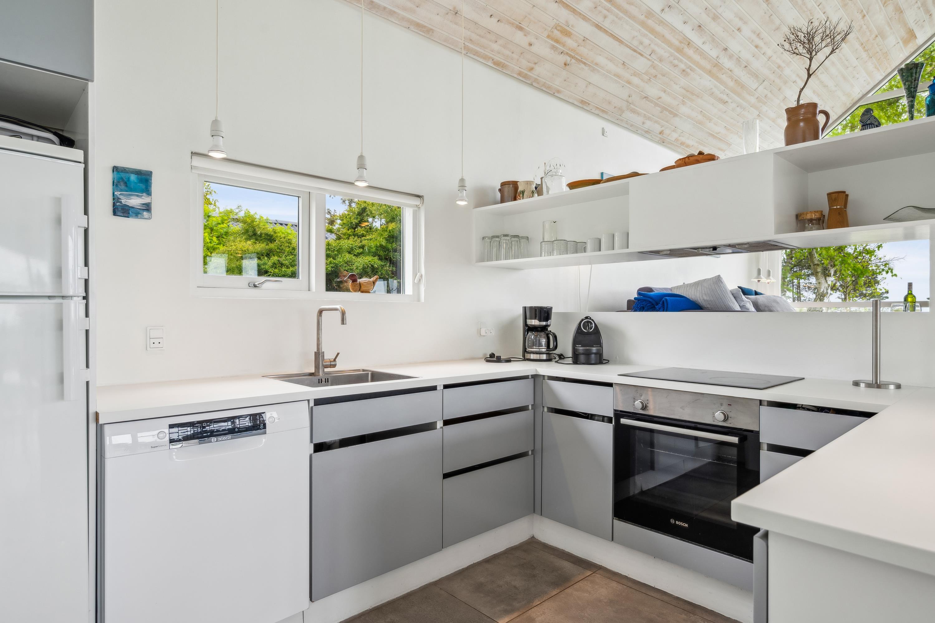 Sehr schönes Ferienhaus in der 1. Reihe vom Meer entfernt mit Panoramablick auf das Kattegat auf einem abgelegenen und großen Naturgrundstück in ungestörter Umgebung. Teilweise überdachte Terrasse mit Gartenmöbeln und Grill. Das Haus verfügt über eine helle, freundliche und geschmackvolle Inneneinrichtung in gestaffelten Grundrissen mit einer Treppe von der Küche zum Wohnzimmer. Vom Wohnzimmer aus hat man einen Blick auf das Meer. Gemütliches Wohnzimmer mit Holzofen, Fernseher und Stereoanlage mit CD. Schöne, geräumige Küche mit Ceranherd, Kühlschrank mit kleinem Gefrierfach und Geschirrspüler. Schönes Badezimmer mit Dusche, Fußbodenheizung, Sauna und Waschmaschine. Das Haus verfügt über 3 Schlafzimmer: 2 mit Doppelbett und 1 mit Etagenbett. Für die kleinen Urlauber steht ein Hochstuhl bereit. Hinweis: Das Haus verfügt über eine Ladestation für Elektroautos.