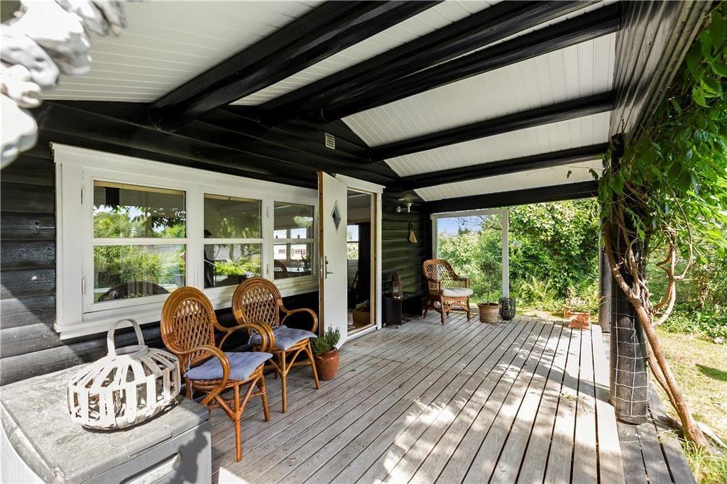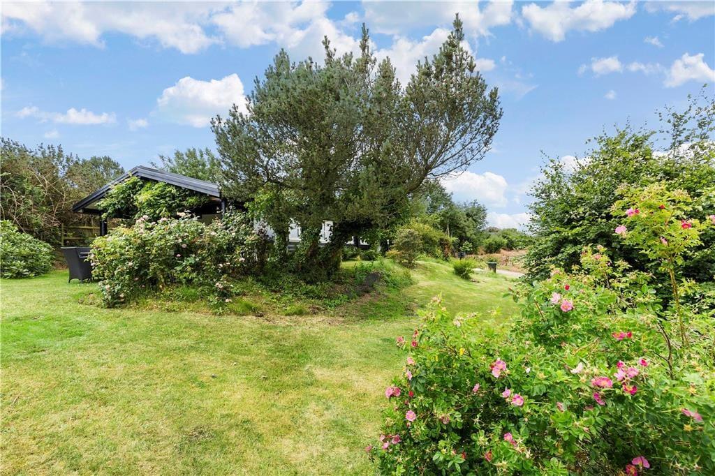 Das Urlaubsdomizil liegt auf einem attraktiven Grundstück mit Platz zum Spielen und für verschiedene Freiluftaktivitäten. Vor dem Haus lockt eine überdachte Veranda mit Gartenmöbeln. Das Grundstück verwöhnt Sie mit einem kleinen Meerblick und einer gemütlichen Feuerstelle, an der Sie allabendlich Stockbrot und Würstchen rösten können. Für die kleinen Urlauber steht ein Trampolin bereit.