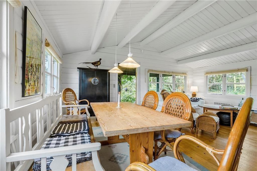 Holme Strand befindet sich in einem wunderschönen Naturgebiet mit Aussicht auf das 49 Meter hohe Ausflugsziel Jernhatten. Auf der Erhebung Jernhatten locken zahlreiche seltene Pflanzenarten und ein reiches Tierleben. Eine Wanderung entlang des Wassers und der steilen Abhänge zählt zu den besonders schönen Naturerlebnissen. Holme Strand erfreut sich zudem bei Anglern großer Beliebtheit. Hier können Sie sogar Ihr mitgebrachtes Boot problemlos zu Wasser lassen. Innerhalb von einer Viertelstunde erreichen Sie per Pkw die malerische Stadt Ebeltoft, die mit diversen Touristenattraktionen lockt und Sie mit Ihren schiefen, alten Häuschen und den schmalen Kopfsteinpflastergassen begeistern wird. Besuchen Sie beispielsweise das alte Rathaus, Det Gamle Rådhus, in dem sich nicht ohne Grund Jahr für Jahr unzählige Heiratswillige aus aller Herren Länder das Ja-Wort geben. Nur 8 Kilometer vom Haus entfernt befindet sich der beliebte Ree-Park, ein Safaripark, in dem Sie wilden Tieren ganz nah kommen. Innerhalb von einer Stunde ist auch der größte Vergnügungspark des Nordens, das Djurs Sommerland, erreichbar. Im Djurs Sommerland werden Dank der zahlreichen Fahrgeschäfte und Attraktionen sicherlich nicht nur die Augen Ihrer Kinder leuchten. Falls Sie Lust haben, einmal auf Tuchfühlung mit ganz großen Haien zu gehen, empfehlen wir Ihnen einen Besuch des beeindruckenden Kattegatcentret in Grenaa, das rund 30 Minuten vom Ferienhaus entfernt liegt.