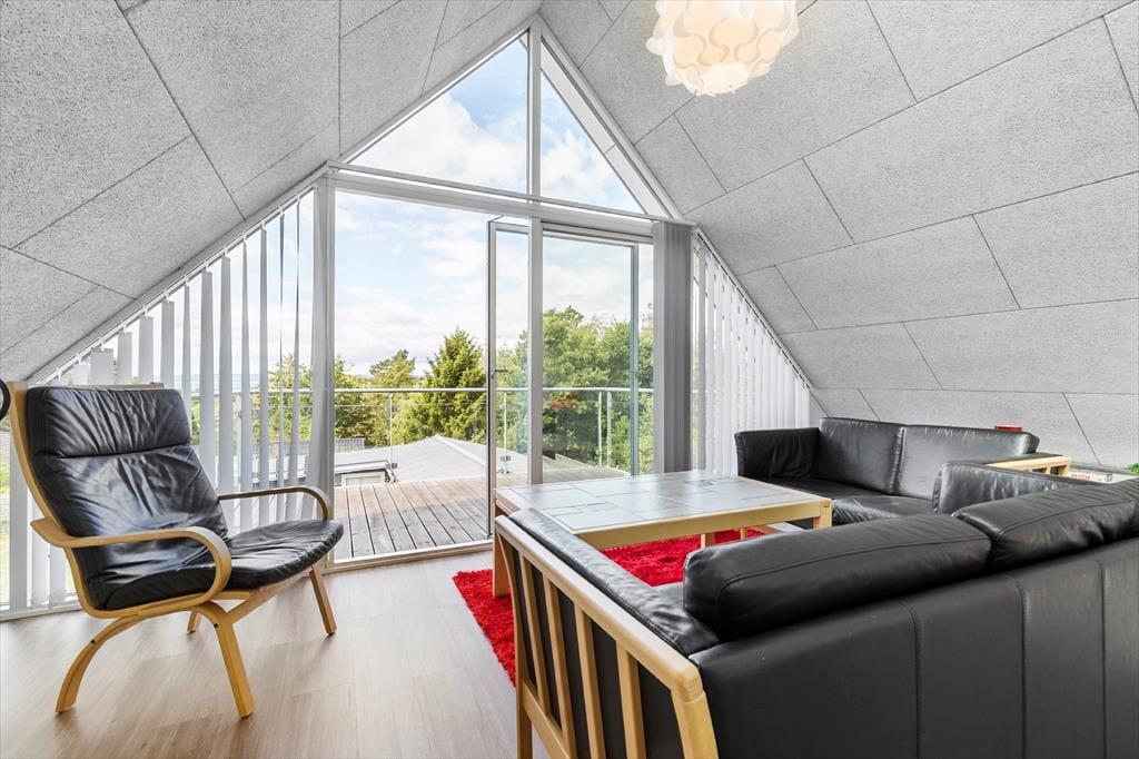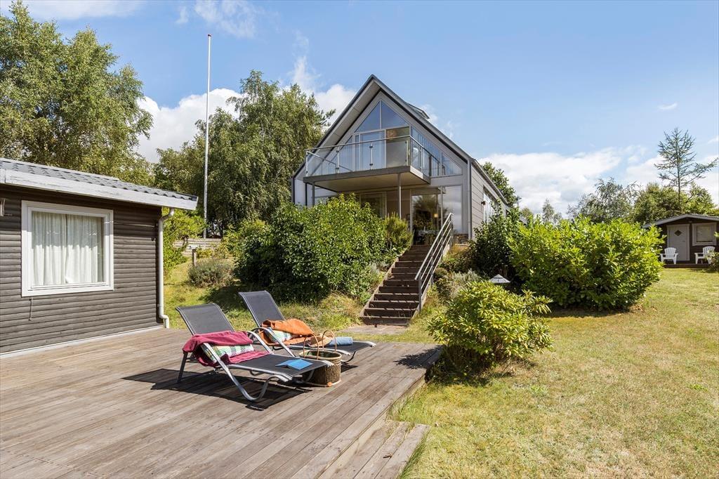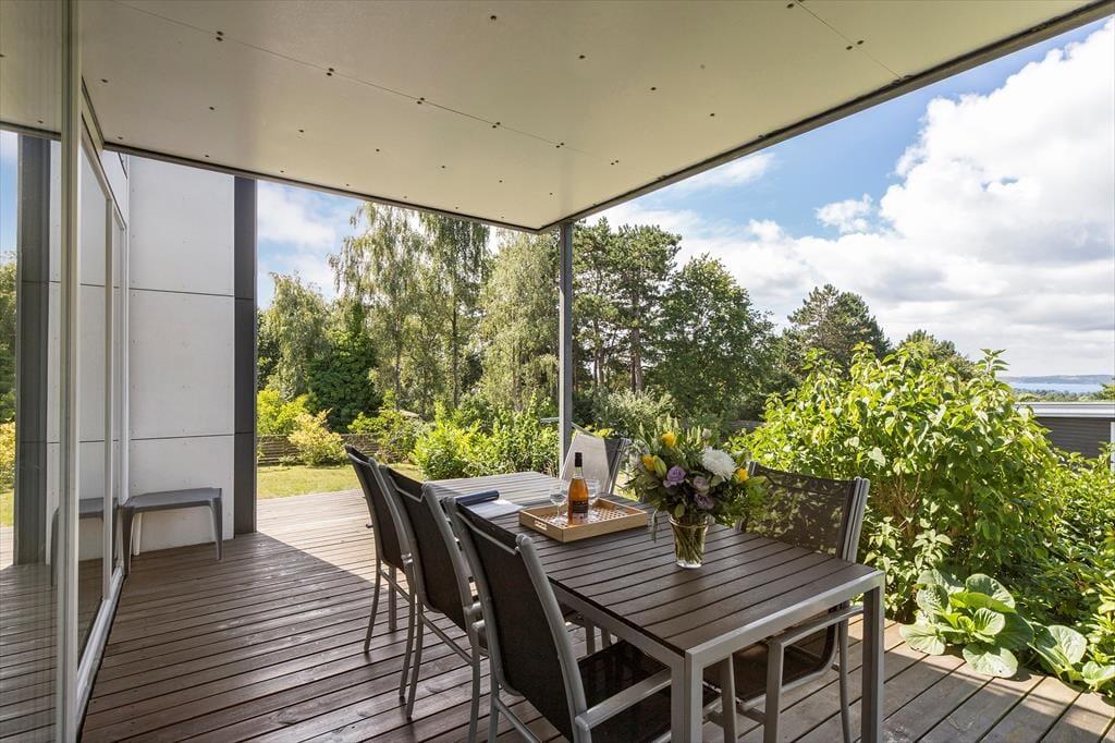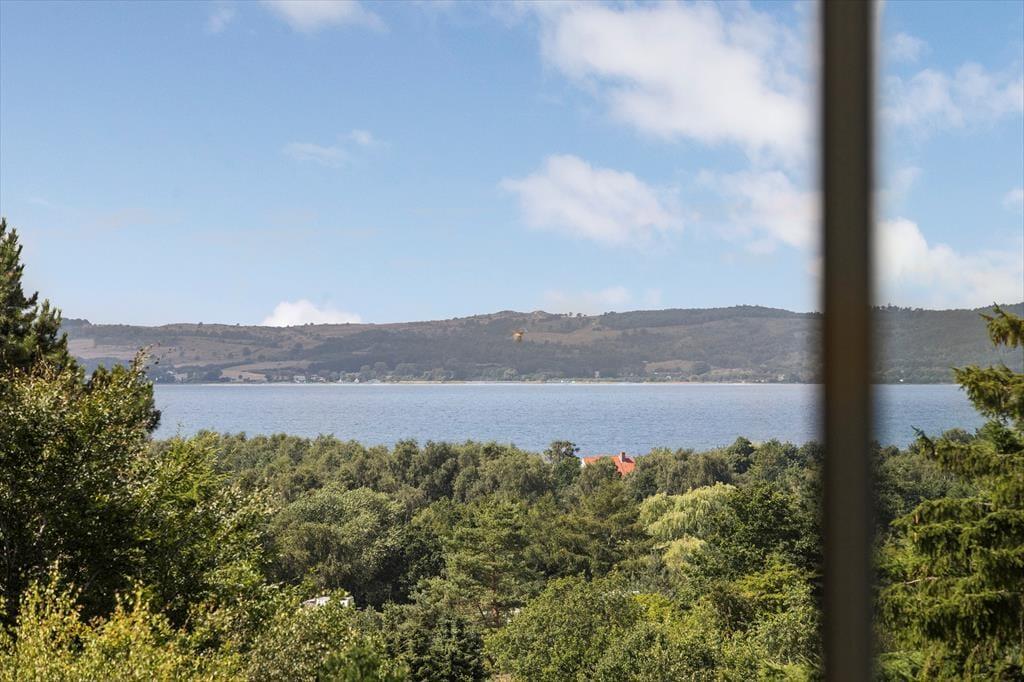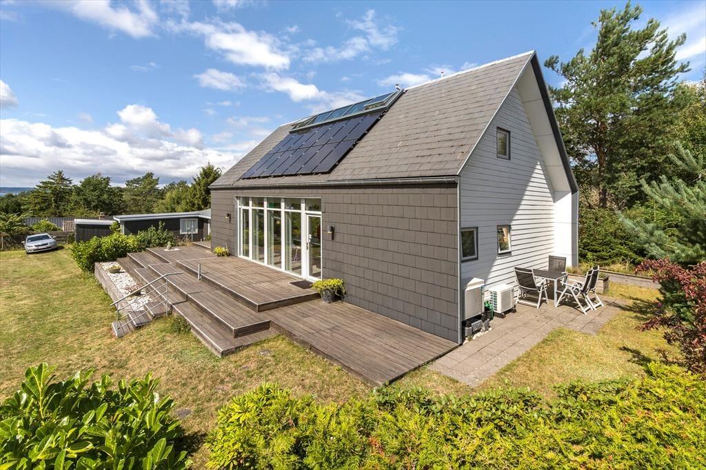 Tretet ein in dieses helle und stilvolle Ferienhaus, das hoch gelegen ist und einen Panoramablick über den Fjord bei Ebeltoft bietet. Hier finden bis zu sechs glückliche Gäste Platz. Das Haus wurde 2011 erbaut, erstreckt sich über zwei Etagen und bietet zwei gemütliche Schlafzimmer, eine gemütliche Wohnküche und ein helles Wohnzimmer – mit Gemütlichkeit und Aussicht, die die Natur fast zu einem Teil der Einrichtung machen. Mit Alkoven, Badezimmer und Infrarotsauna eignet sich das Haus perfekt für geselliges Beisammensein und Entspannung, während die Wärmepumpe für die nötige Wärme sorgt.