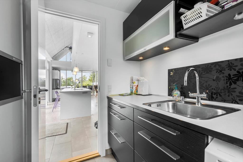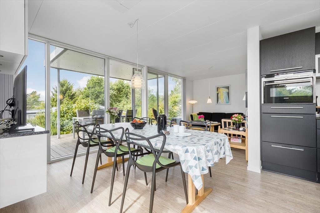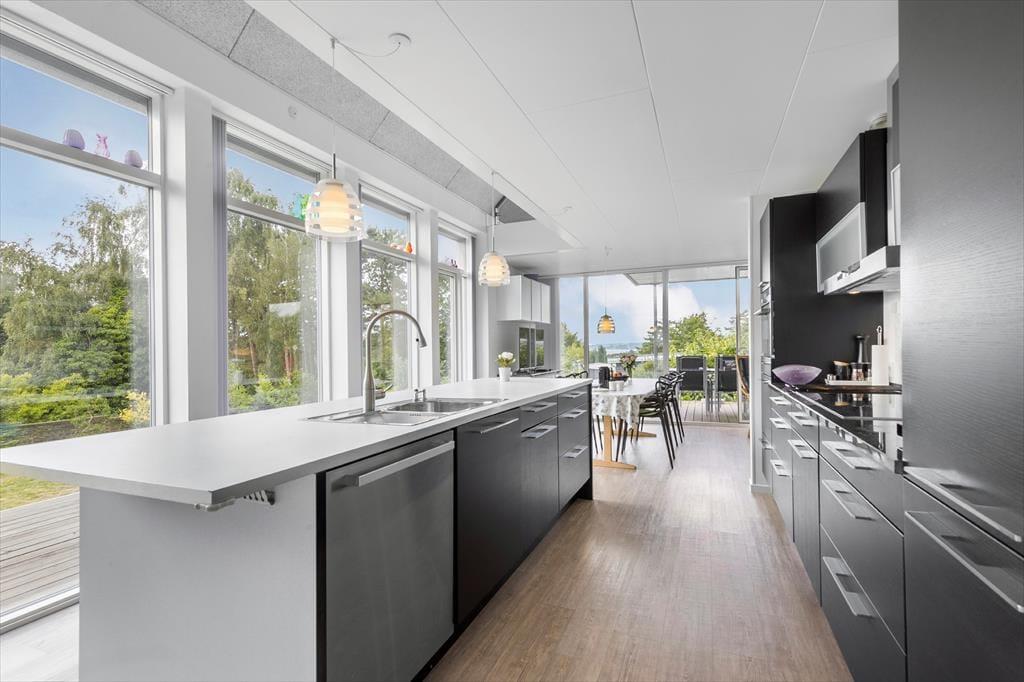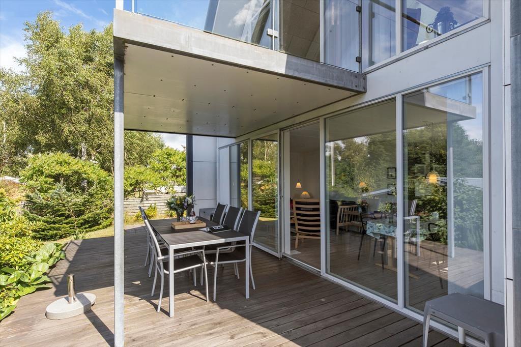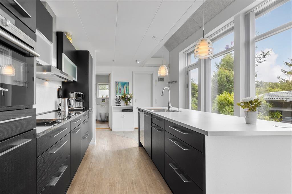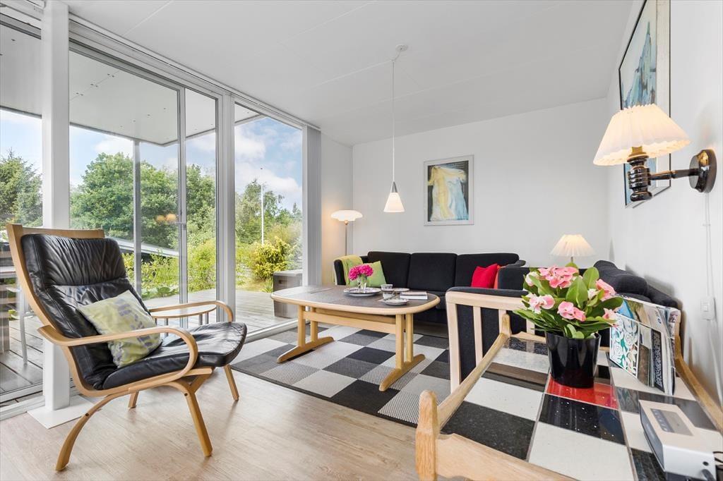 Tretet ein in dieses helle und stilvolle Ferienhaus, das hoch gelegen ist und einen Panoramablick über den Fjord bei Ebeltoft bietet. Hier finden bis zu sechs glückliche Gäste Platz. Das Haus wurde 2011 erbaut, erstreckt sich über zwei Etagen und bietet zwei gemütliche Schlafzimmer, eine gemütliche Wohnküche und ein helles Wohnzimmer – mit Gemütlichkeit und Aussicht, die die Natur fast zu einem Teil der Einrichtung machen. Mit Alkoven, Badezimmer und Infrarotsauna eignet sich das Haus perfekt für geselliges Beisammensein und Entspannung, während die Wärmepumpe für die nötige Wärme sorgt.