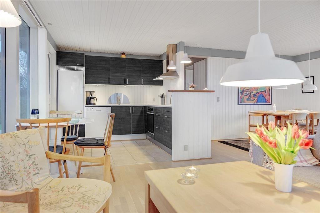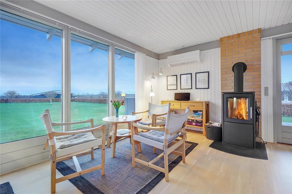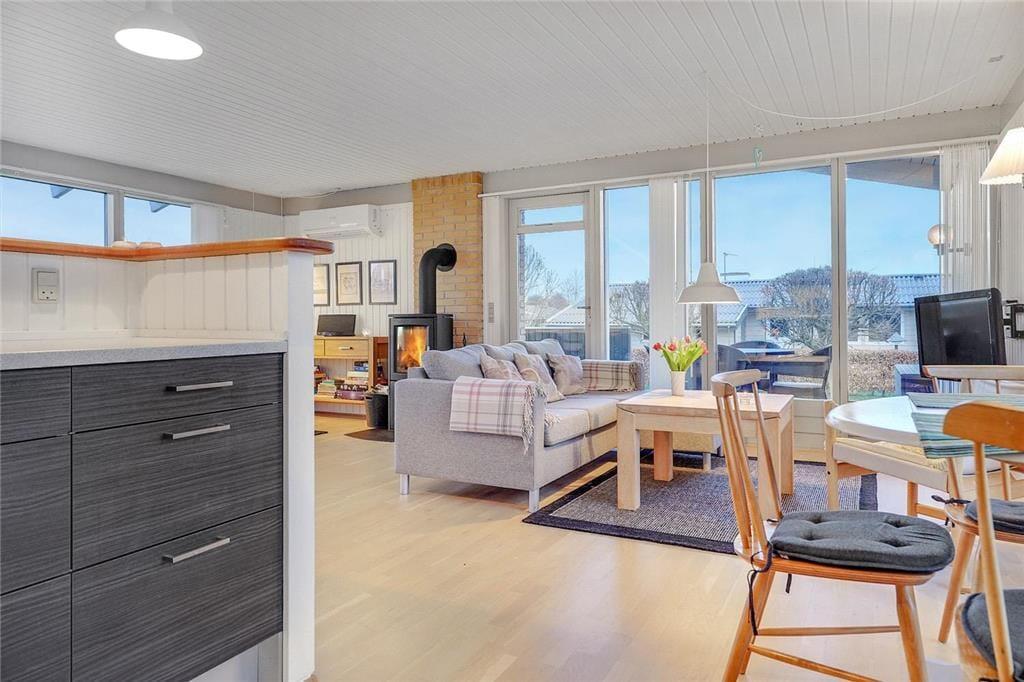 In der Nähe von Ebeltoft begrüßt dich dieses gemütliche und gepflegte Ferienhaus, das aufgrund seiner Einrichtung mit einer hellen und einladenden Wohnatmosphäre überzeugt. Im geräumigen Wohnraum stehen komfortable Möbel und ein schöner Kaminofen zur Verfügung. Der Kaminofen untermalt deine erholsamen Stunden im Kreise deiner Lieben mit behaglicher Wärme und klassischem Ferienhauscharme. Die Küche ist offen mit dem Wohnraum verbunden. Sie präsentiert sich funktionell und modern und bietet neben einem Geschirrspüler alles, was du für die Zubereitung eurer Mahlzeiten benötigst. Das hübsche Badezimmer ist mit einer Fußbodenheizung, einer Duschnische und einer Waschmaschine ausgestattet. Zwei der insgesamt drei ansprechenden Schlafräume beinhalten jeweils ein Doppelbett. Im dritten Raum triffst du auf ein Einzelbett. Damit sich auch die kleinsten Gäste wohlfühlen, stehen ein Hochstuhl und ein Kinderbett bereit.