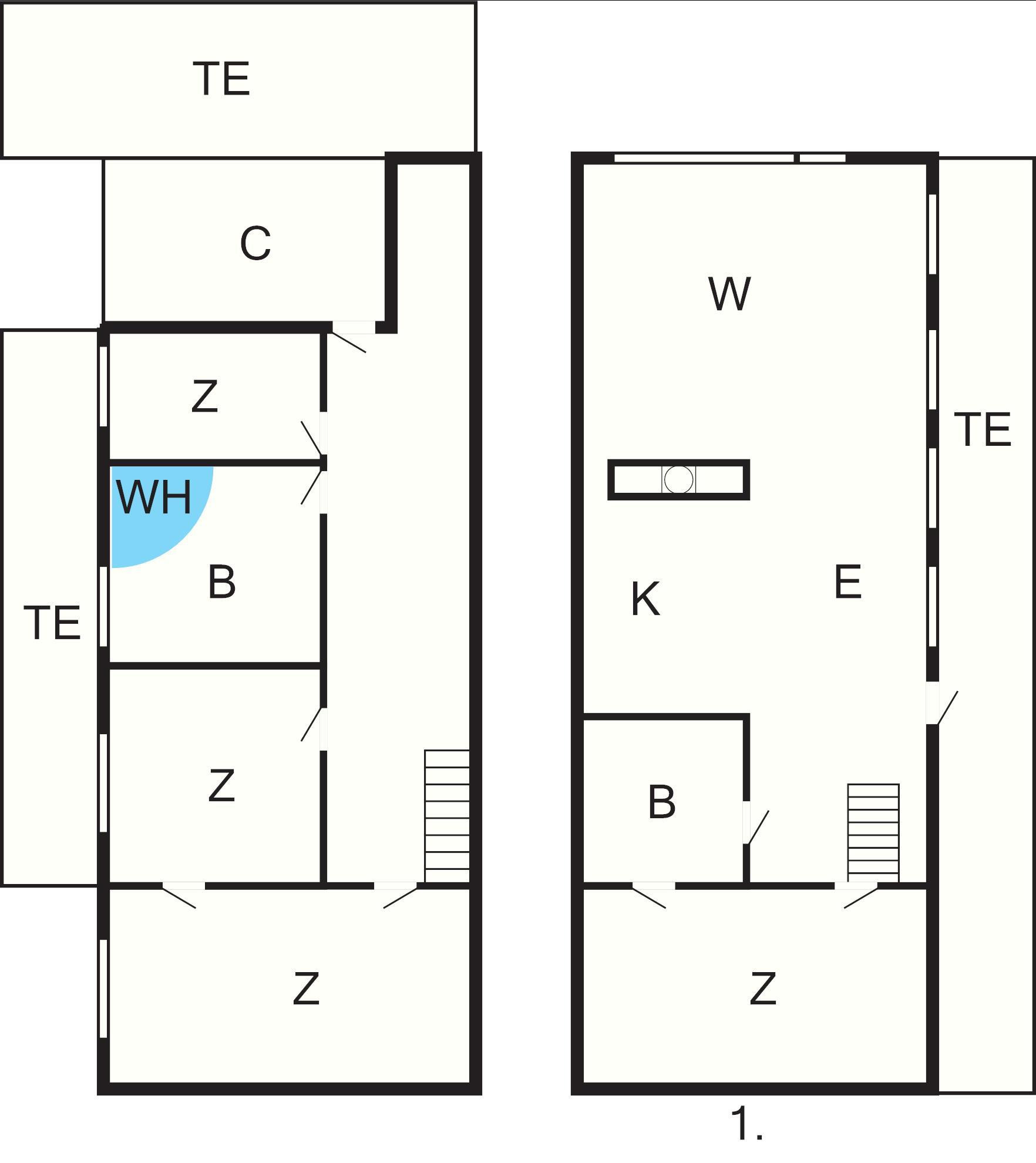 4 Schlafz.: (1DB)+(1DB)+(1DB+1B)+(1DB+1B), Kinderbett