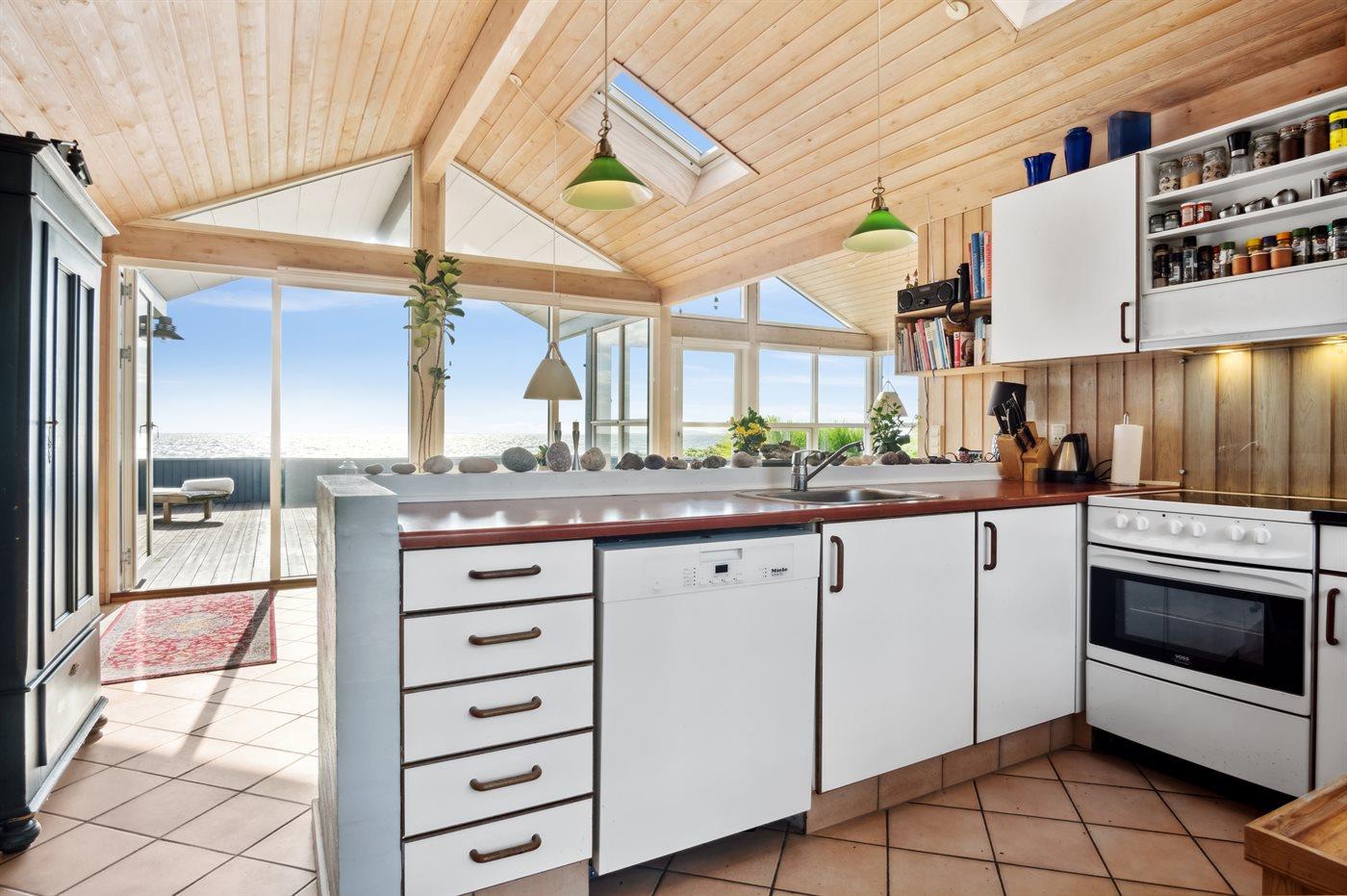 Das Ferienhaus ist gut ausgestattet und eignet sich sehr gut für zwei Familien, da es 8 Schlafplätze gibt. Das Herz des Hauses ist die große Küche/Esszimmer und das Wohnzimmer in einem, wo der Ausblick herrlich ist, egal ob man ihn von der Küche oder dem Wohnzimmer aus genießt. Die großen Fenster umrahmen die Aussicht und lassen viel Licht herein. Die Gegend lädt zu Spaziergängen und Fahrradtouren in der schönen Natur ein, und wenn man einen Kontrast zu dieser ruhigen Umgebung wünscht, liegt Ebeltoft nur etwa 7 km entfernt, wo es eine große Auswahl an Restaurants und Eisdielen gibt, u.a.