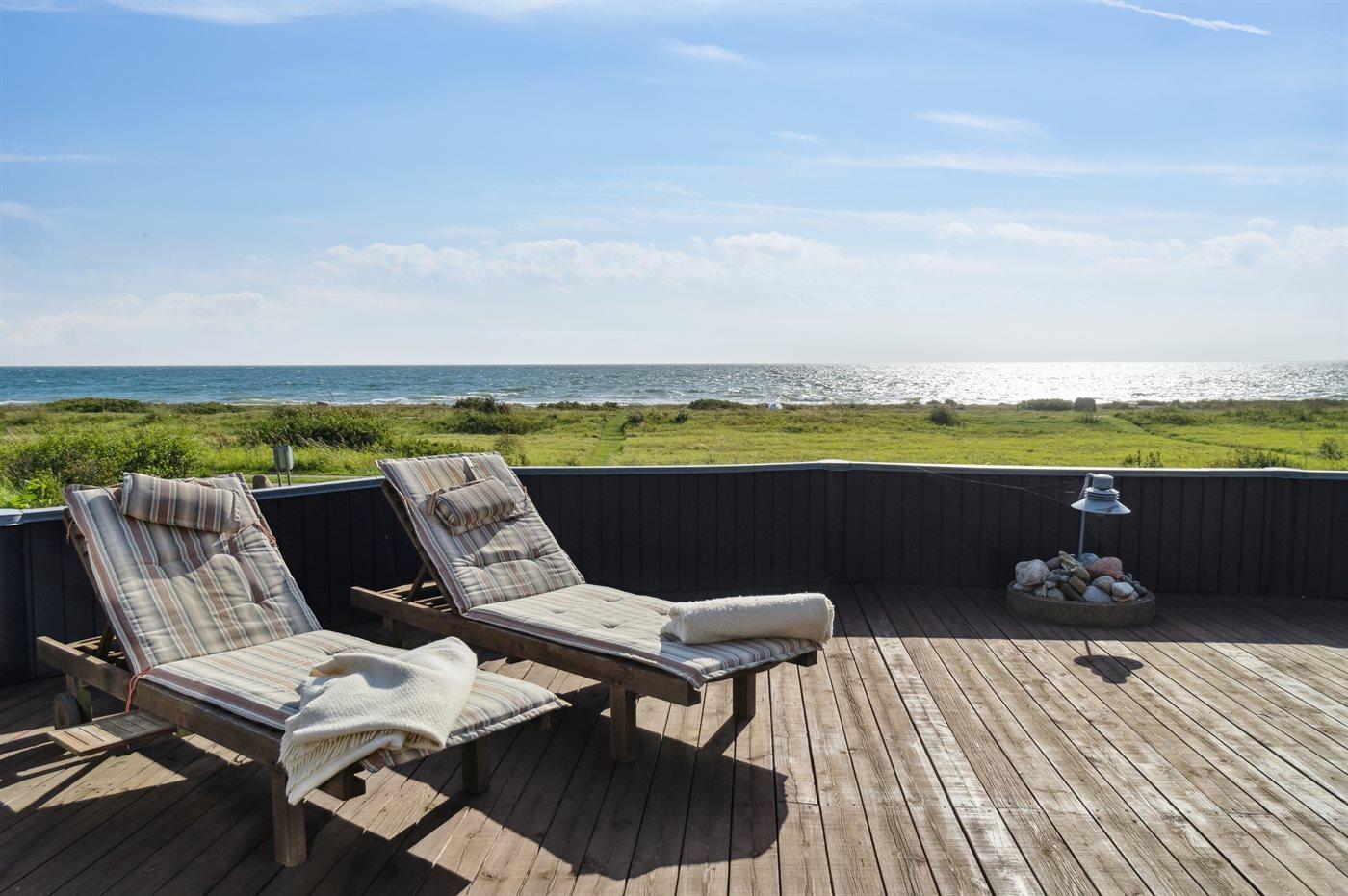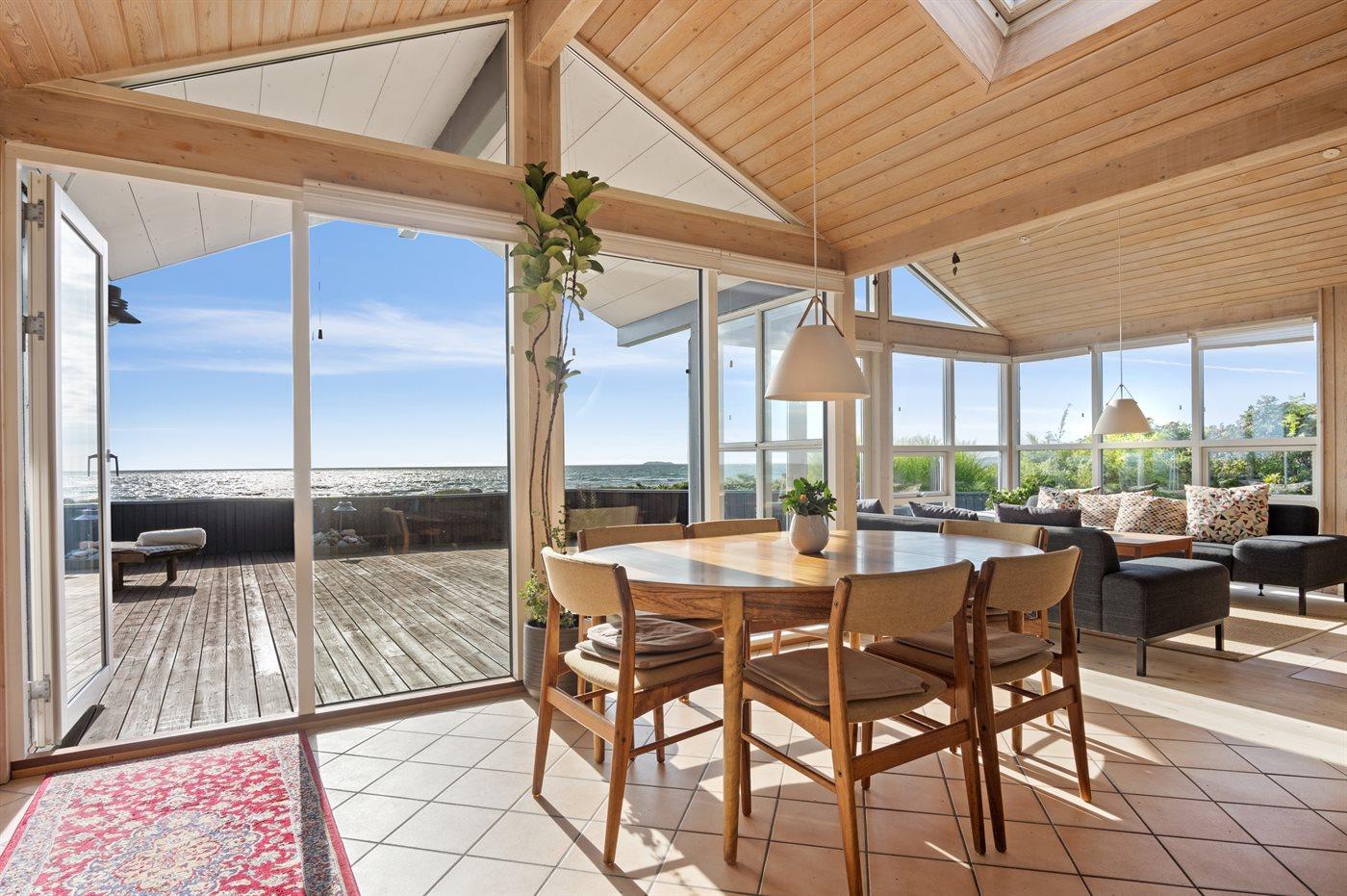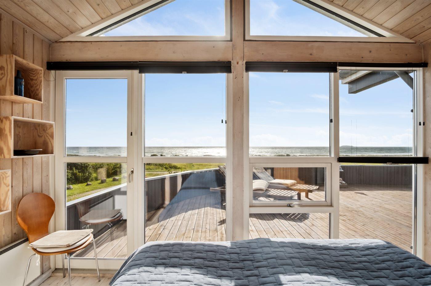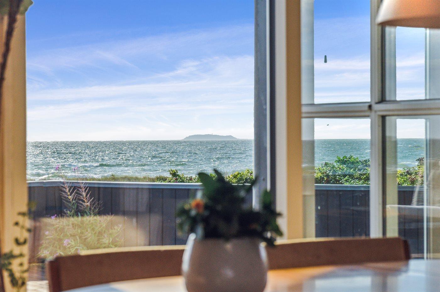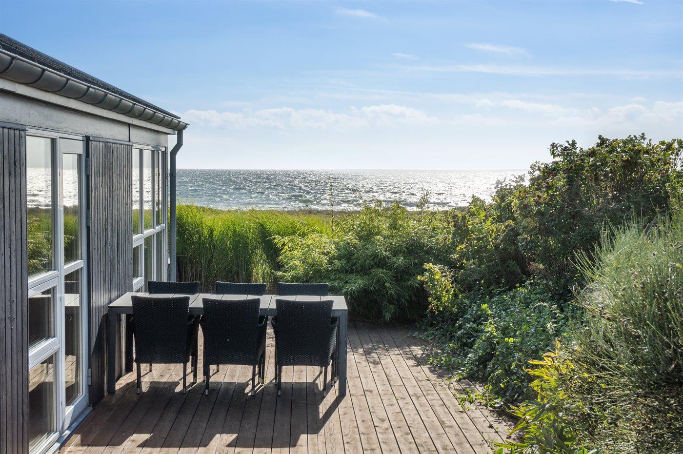 Dieses schöne Ferienhaus liegt direkt am Kattegat und bietet einen 180-Grad-Panoramablick auf das Meer, der sich sowohl von der herrlichen Terrasse als auch von innen im Ferienunterkunft erstreckt. Selbst in den meisten Schlafzimmern kann die großartige Aussicht genossen werden - eine bessere Lage ist einfach schwer zu finden.