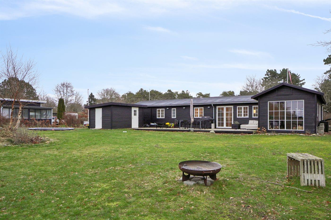 Die Ferienunterkunft liegt auf einem 1450 m² großen Gartengrundstück. Die Entfernung zum Fjord beträgt 225 m. Die nächste Einkaufsmöglichkeit liegt 1900 m entfernt. Es steht ein offenes Terrassenareal zur Verfügung. Schaukel. Sandkasten. Kinderspielhaus. Trampolin. Fußballtor. Die Entfernung zu einem Spielplatz beträgt 2200 m.Lagerfeuerstelle. Es steht ein Grill zur Verfügung. Parkplatz auf dem Grundstück.