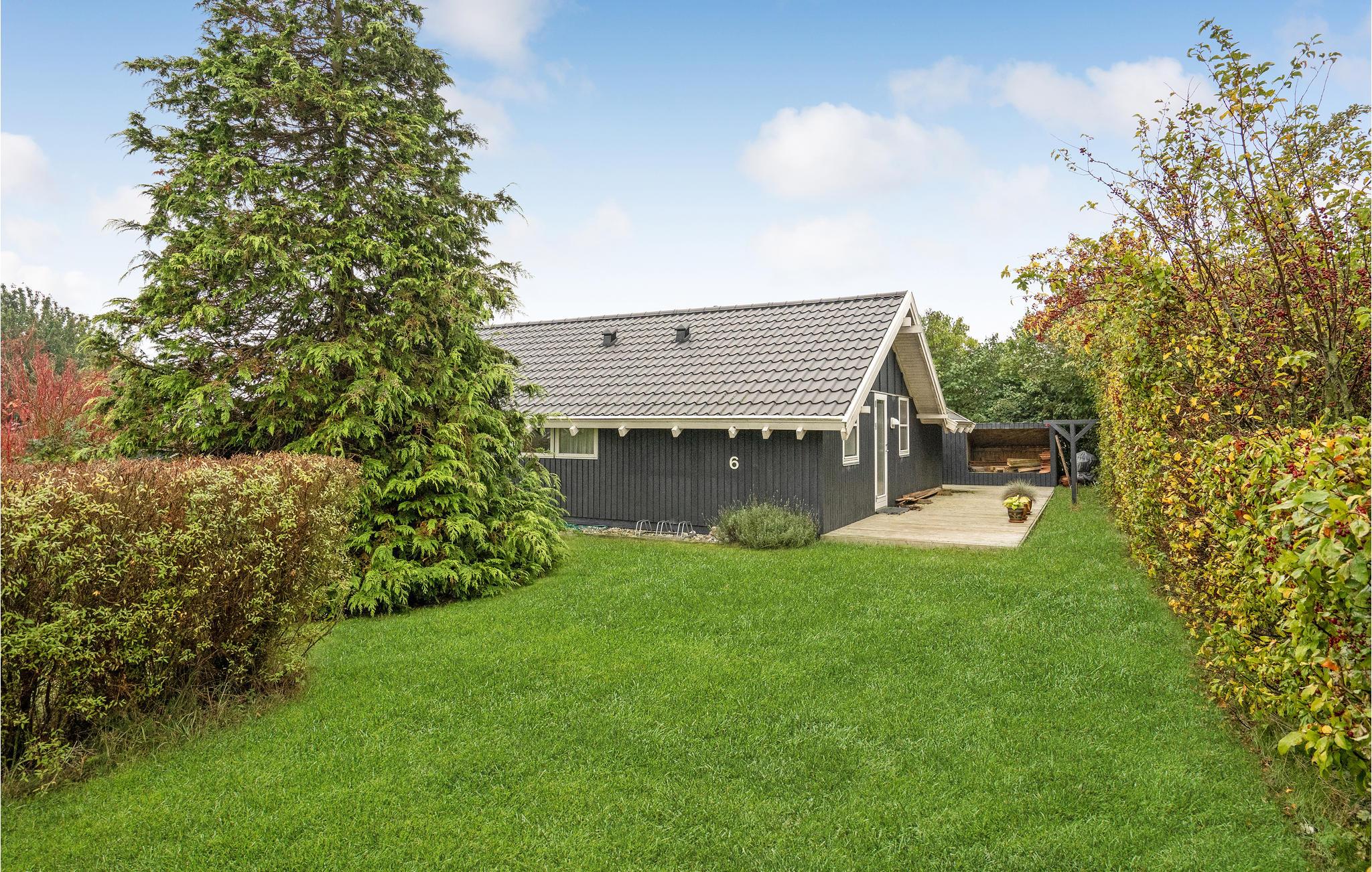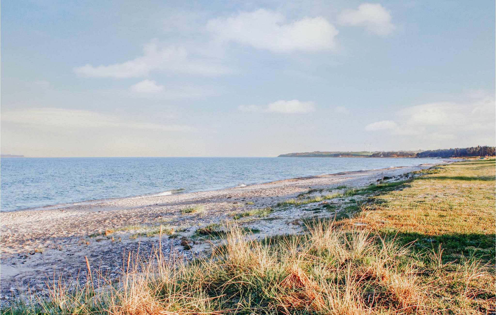 Gemütliches Ferienhaus mit Meerblick, Kaminofen und Garten in Dråby Strand, ideal für erholsame Tage am Strand.