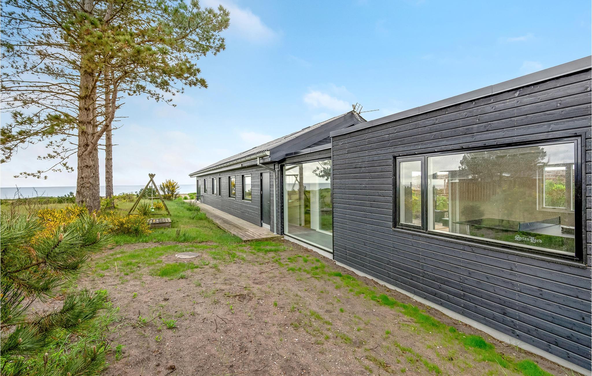 Modernes Ferienhaus mit Panoramablick und finnischem Holzbad, nur 100 m vom Sandstrand bei Ebeltoft.