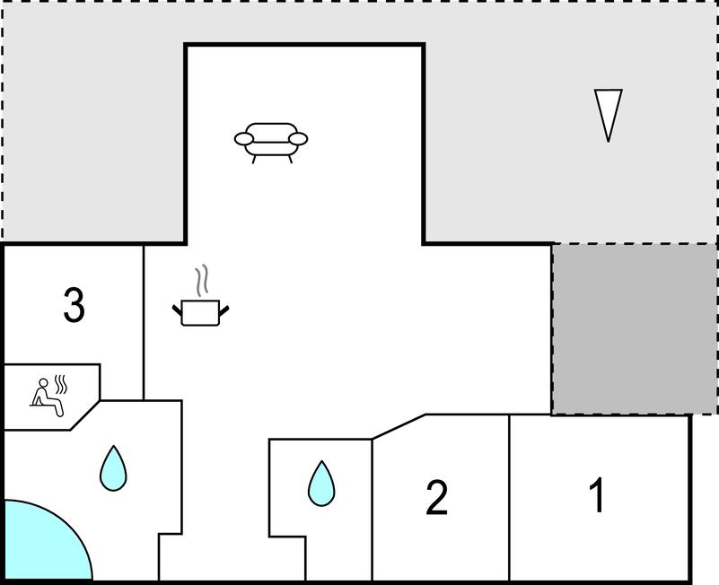 Badezimmer (nr. 2) - WC. Warmes und kaltes Wasser. Dusche
