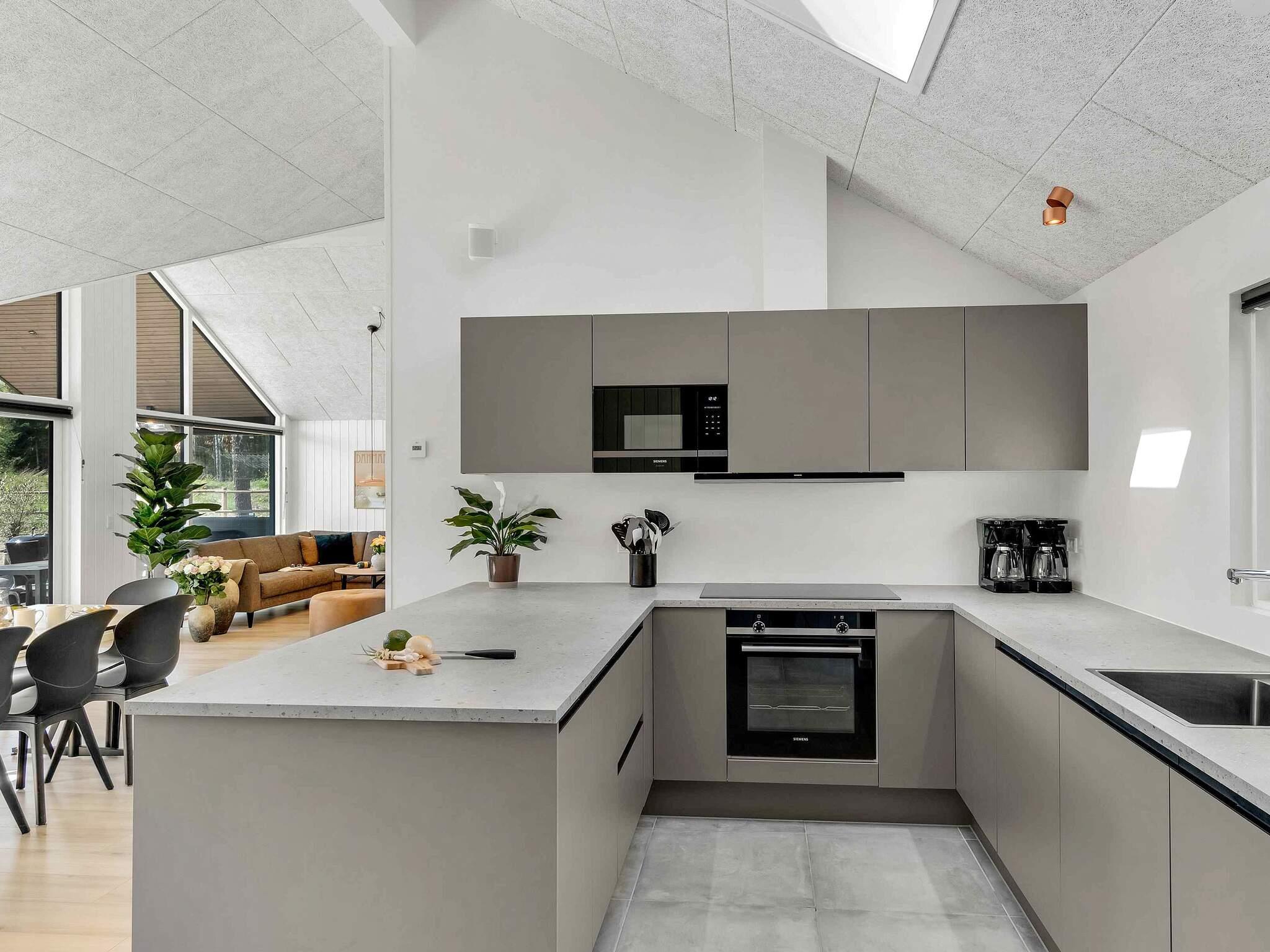 Wenn es Abend wird, treffen Sie sich in der gemütlichen Lounge. Hier duftet es nach hausgemachten Speisen aus der gut ausgestatteten Küche, während die Flammen des Holzofens für eine warme Atmosphäre sorgen. Genießen Sie nach dem Abendessen einen Film auf dem 65-Zoll-Smart-TV oder erzählen Sie sich die Erlebnisse des Tages.