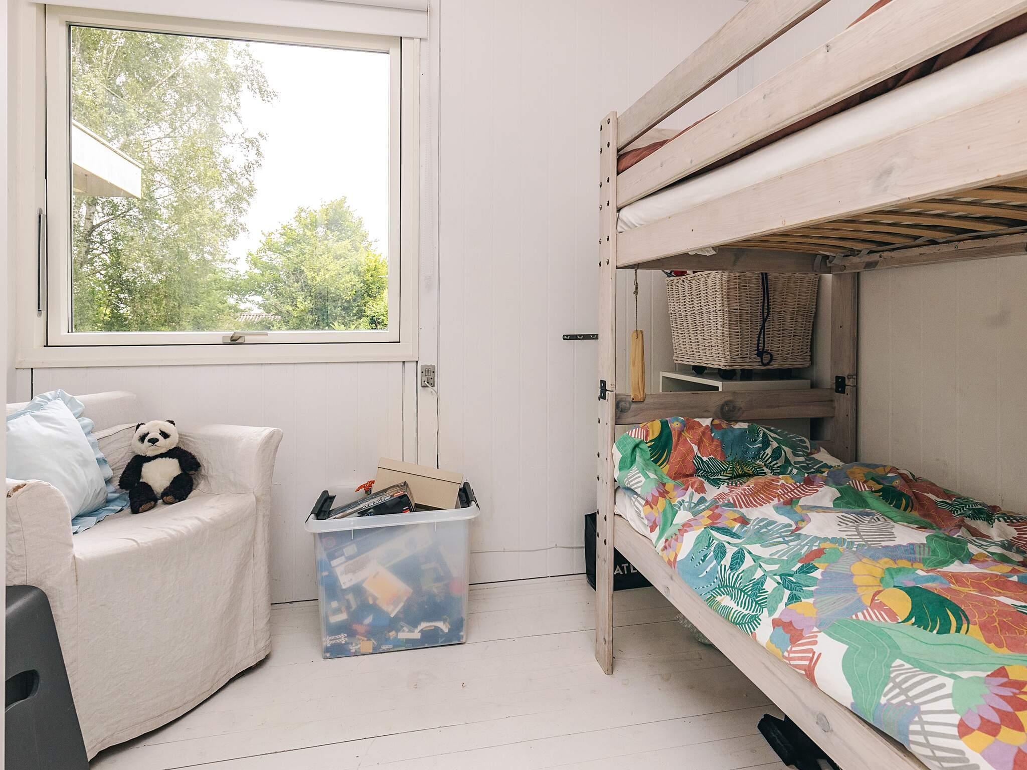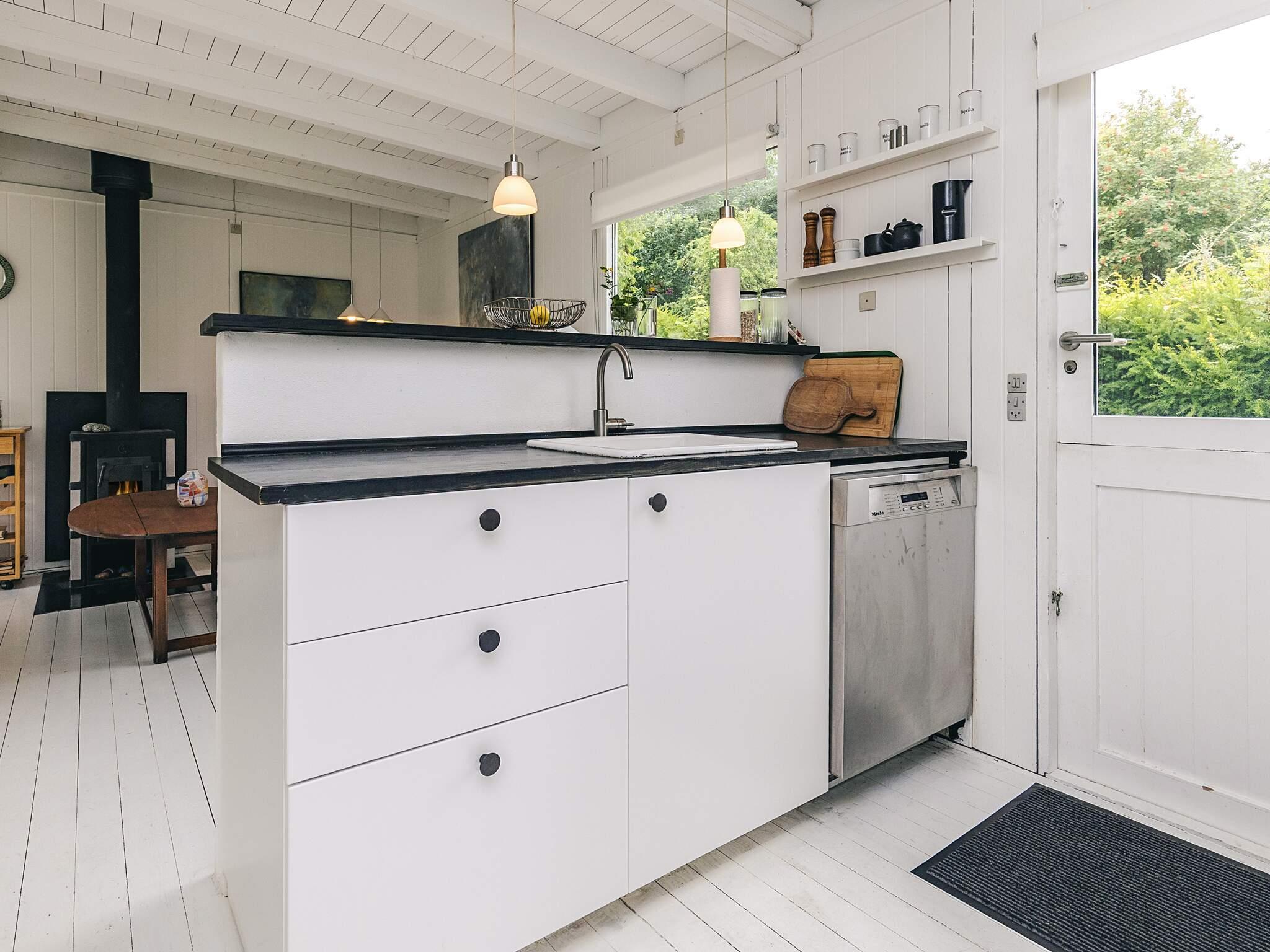 Draußen lädt ein großer, üppiger Garten zum Spielen, Ballspielen und Entspannen im Grünen ein. Auf der Terrasse können Sie die erste Tasse Kaffee des Tages mit Blick auf die Baumkronen genießen - und vielleicht Ihren nächsten Ausflug ins schöne Hornbæk oder die gemütlichen Straßen von Dronningmølles planen. Wenn es Abend wird, ist die Terrasse der ideale Ort für einen Grillabend in sommerlicher Atmosphäre.