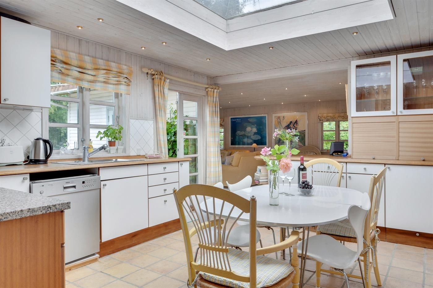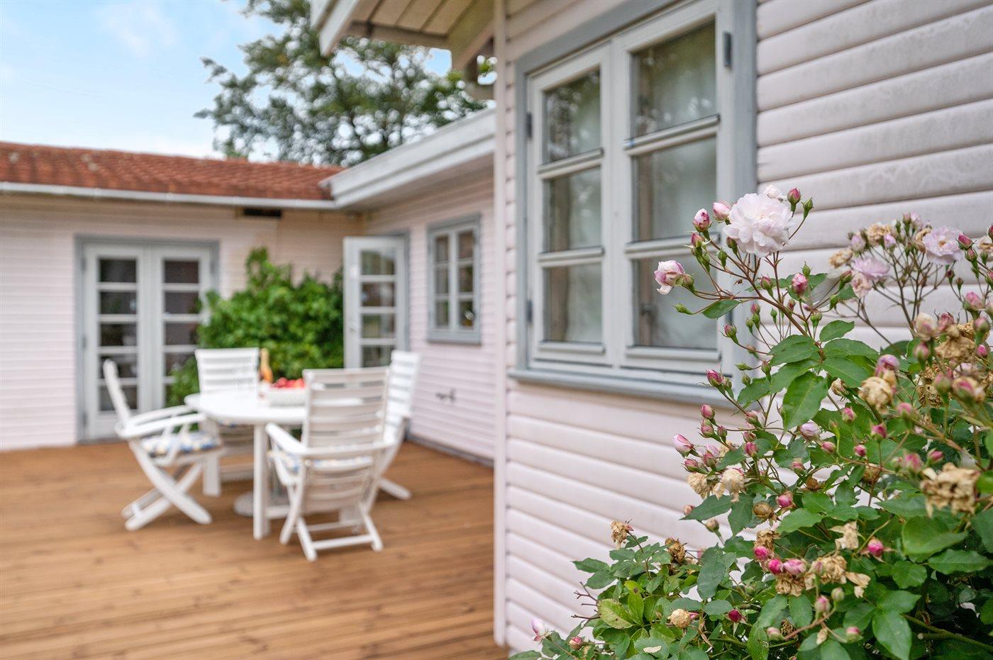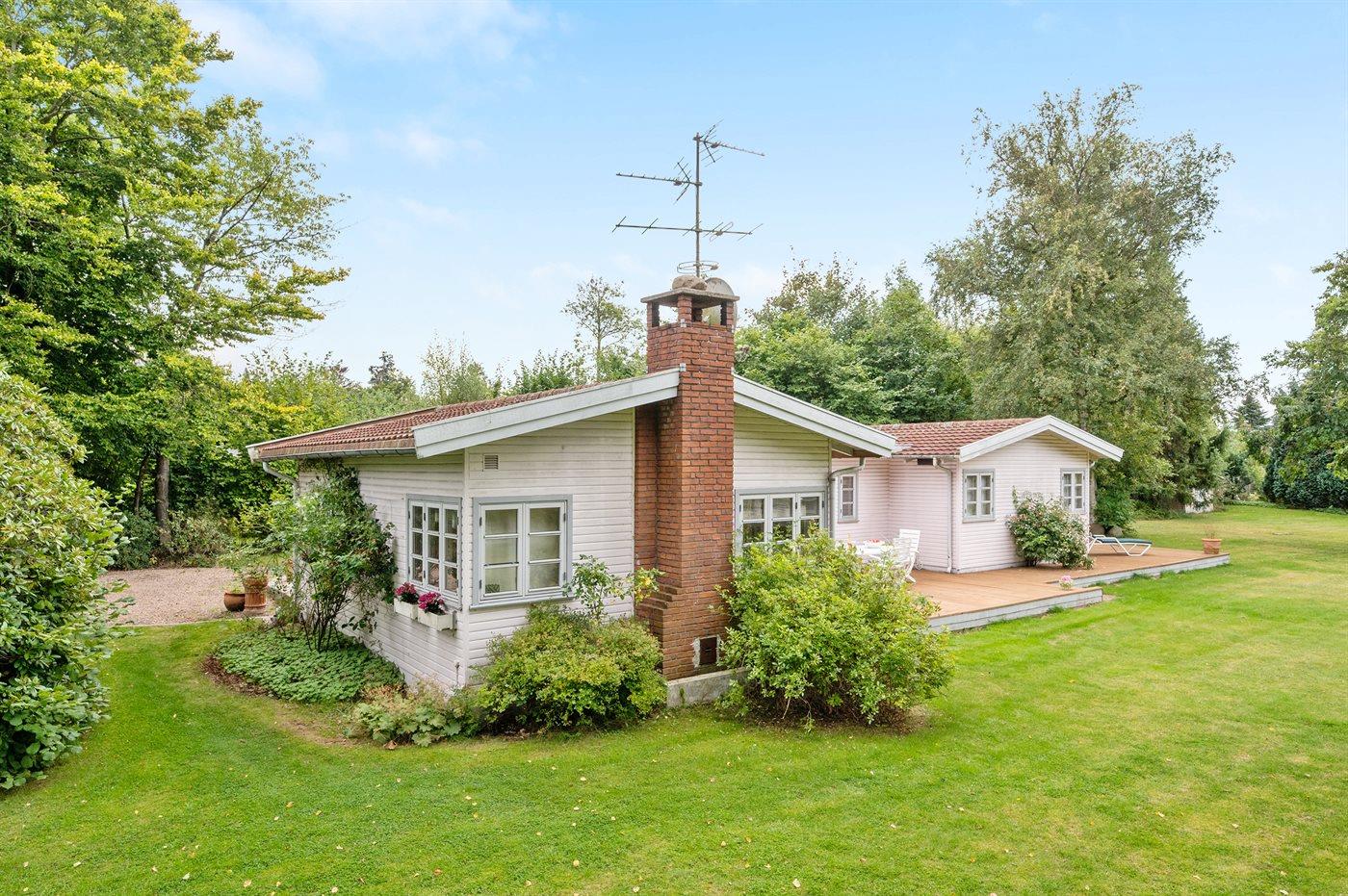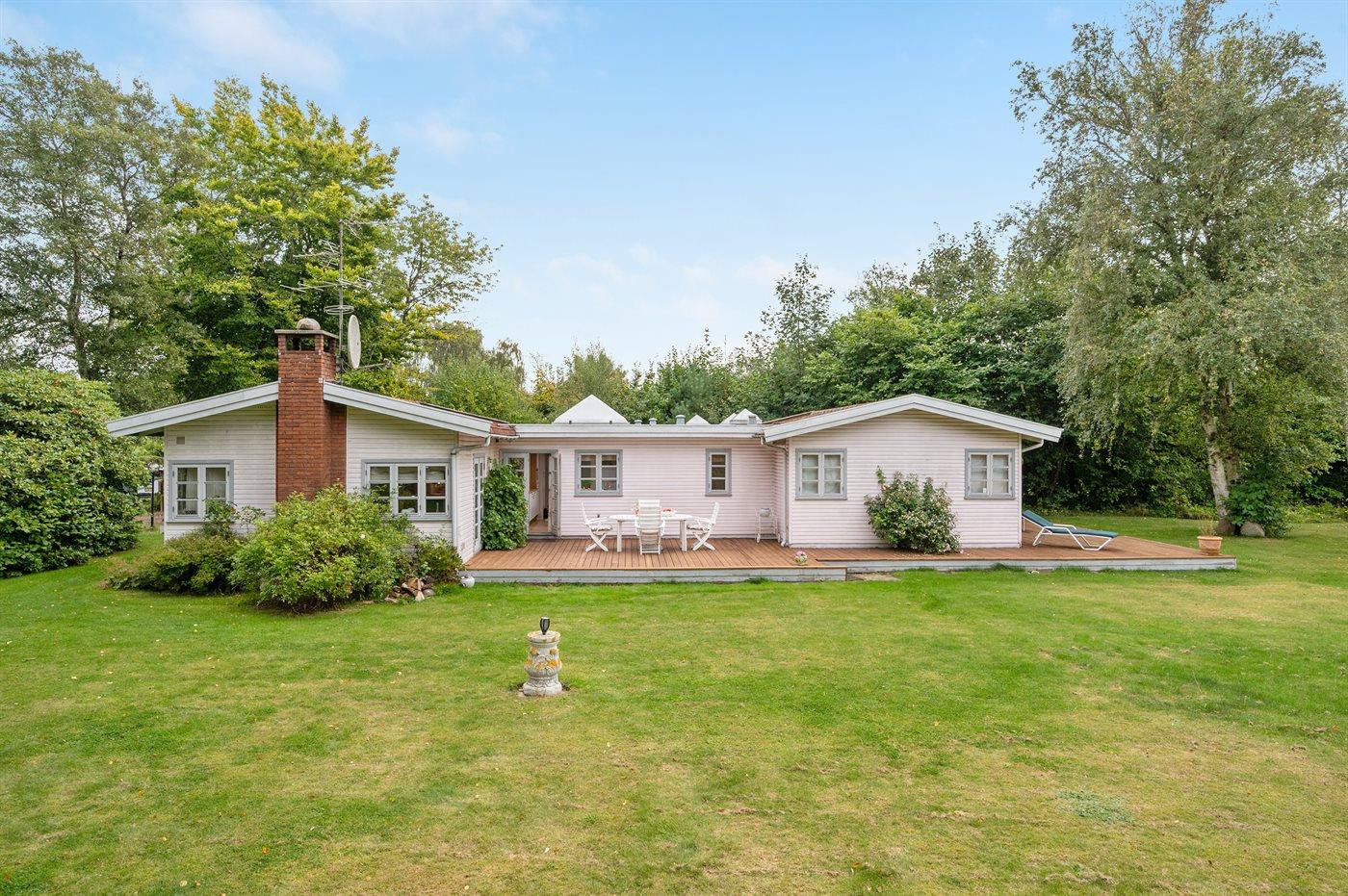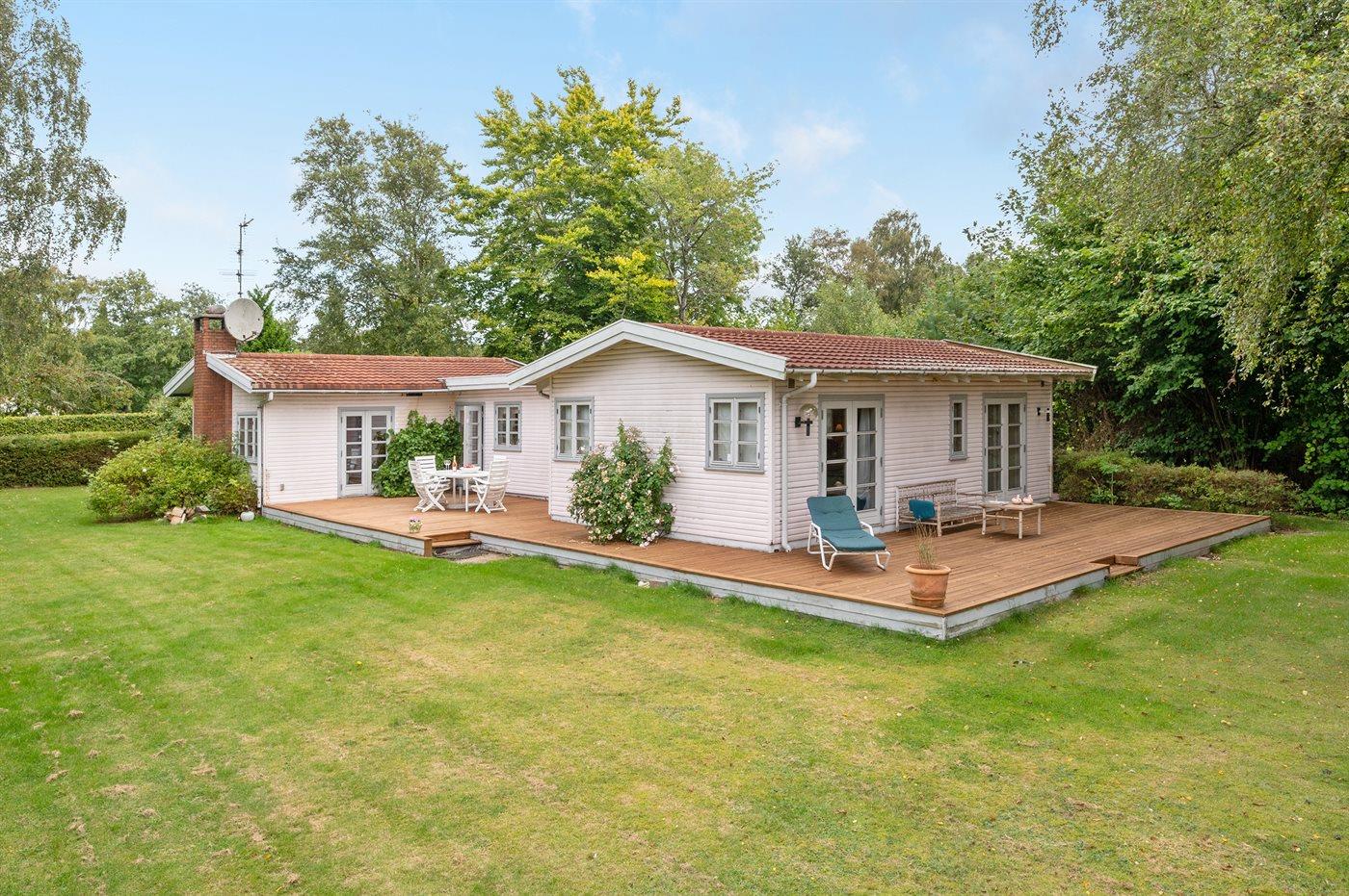 Ein schönes und gut eingerichtetes Ferienhaus mit 2 Badezimmern. Das Haus liegt auf einem parkähnlichen Grundstück in dem beliebten und besonders attraktiven, älteren Stadtteil von Dronningmølle.