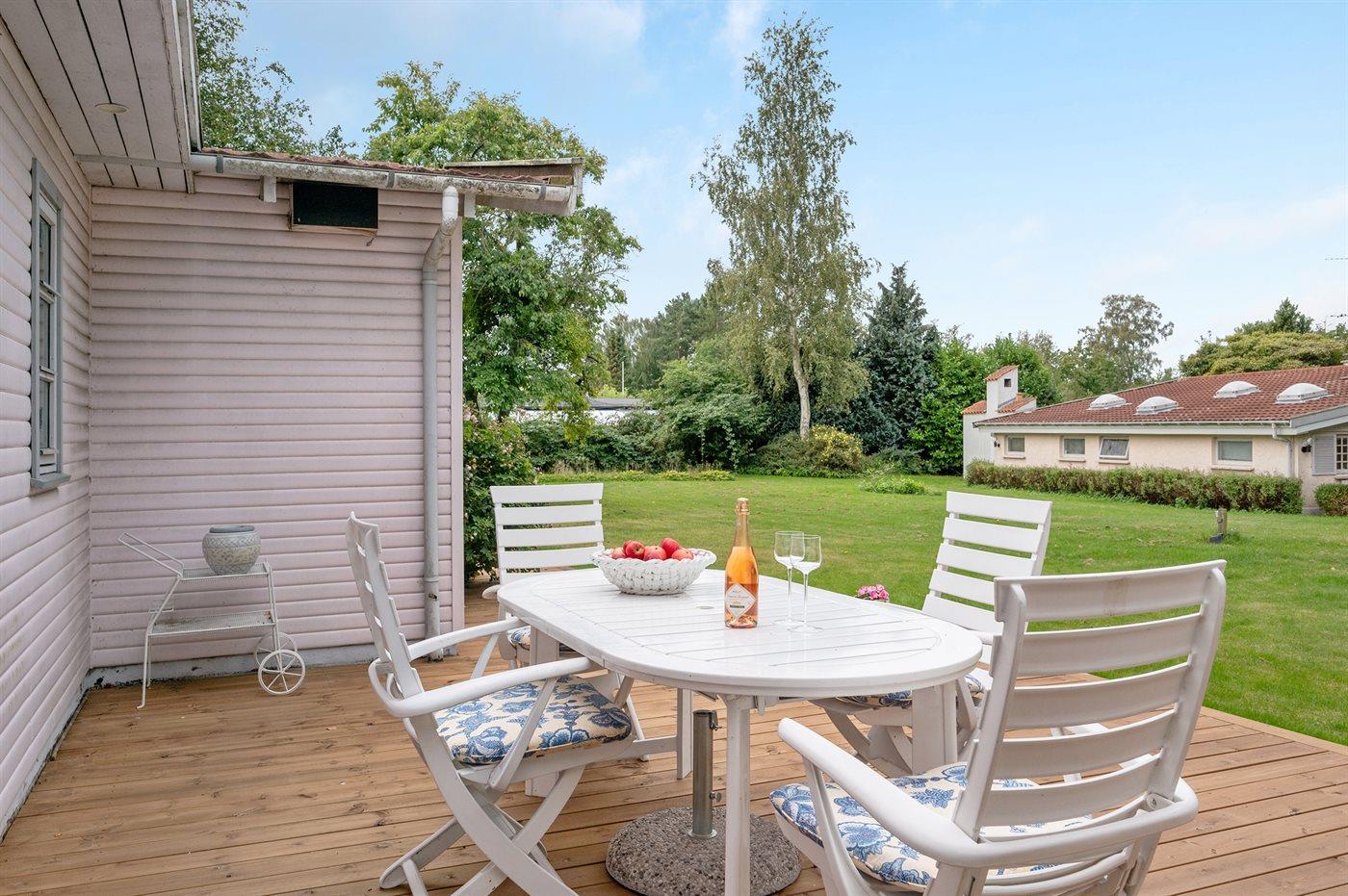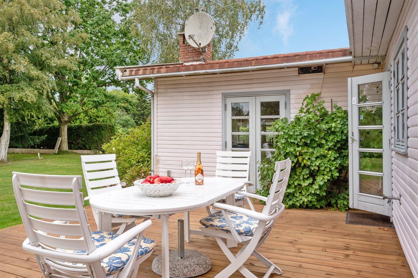 Charmantes Ferienhaus in Dronningmølle mit großem Garten, Terrasse und nah am Meer für entspannte Urlaubstage.
