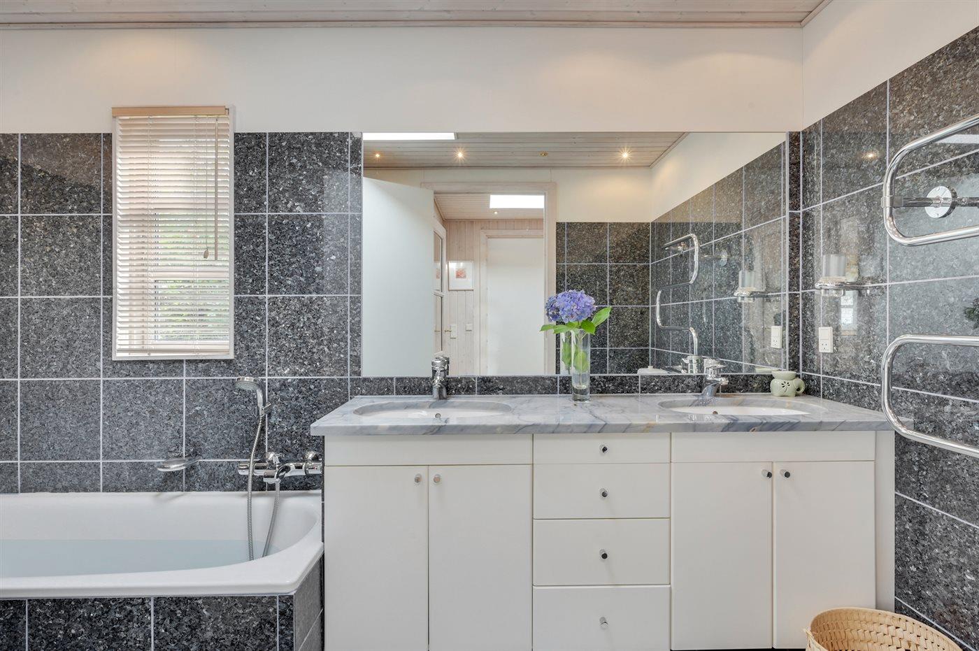 Es gibt 2 Badezimmer mit Duschnische und 2 Toiletten. Fußbodenheizung in 2 Badezimmern.. Badewanne.