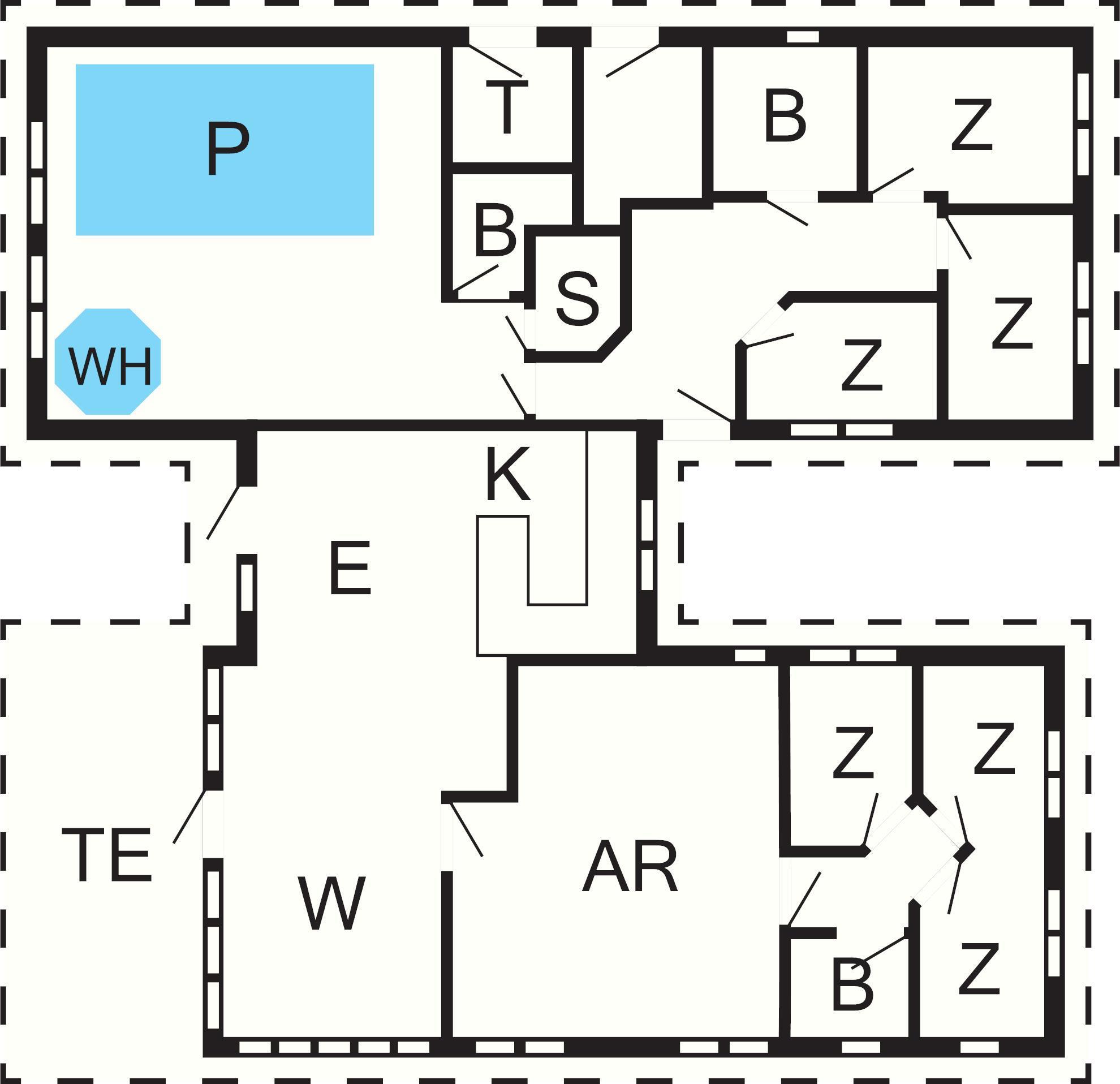 Poolbereich, einen Küchen-Ess-Wohnbereich, einen Aktivitätsraum sowie
