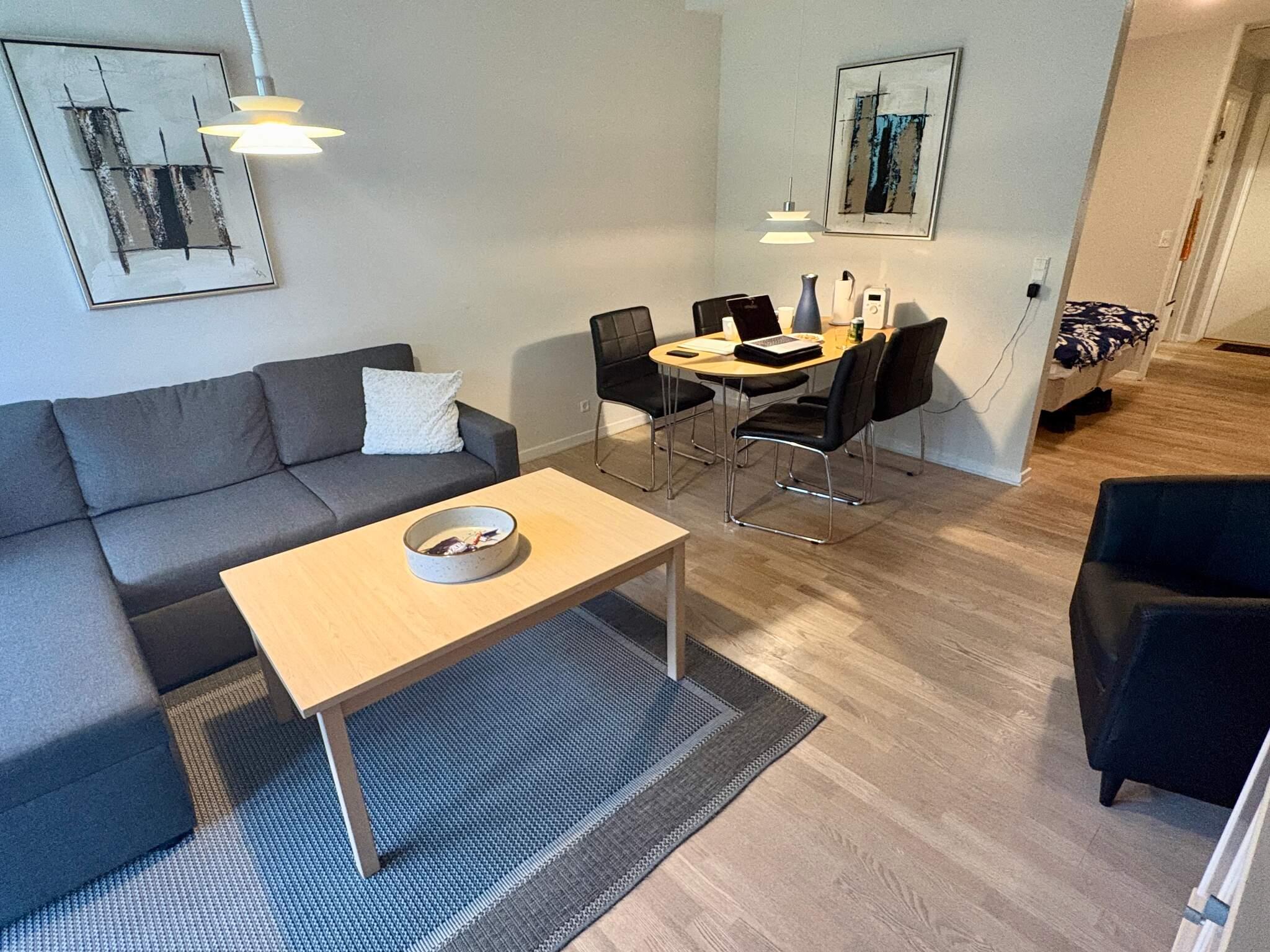 Die Wohnung zählt zu den größeren auf dem Gelände und verfügt über eine schöne Küche mit einem guten Arbeitsplatz, ein modernisiertes Badezimmer, ein Wohnzimmer und ein bequemes, doppeltes Schlafsofa. Zur Unterhaltung stehen Smart-TV, Chromecast sowie dänische, deutsche und schwedische Sender zur Verfügung. WLAN ist ebenfalls vorhanden.