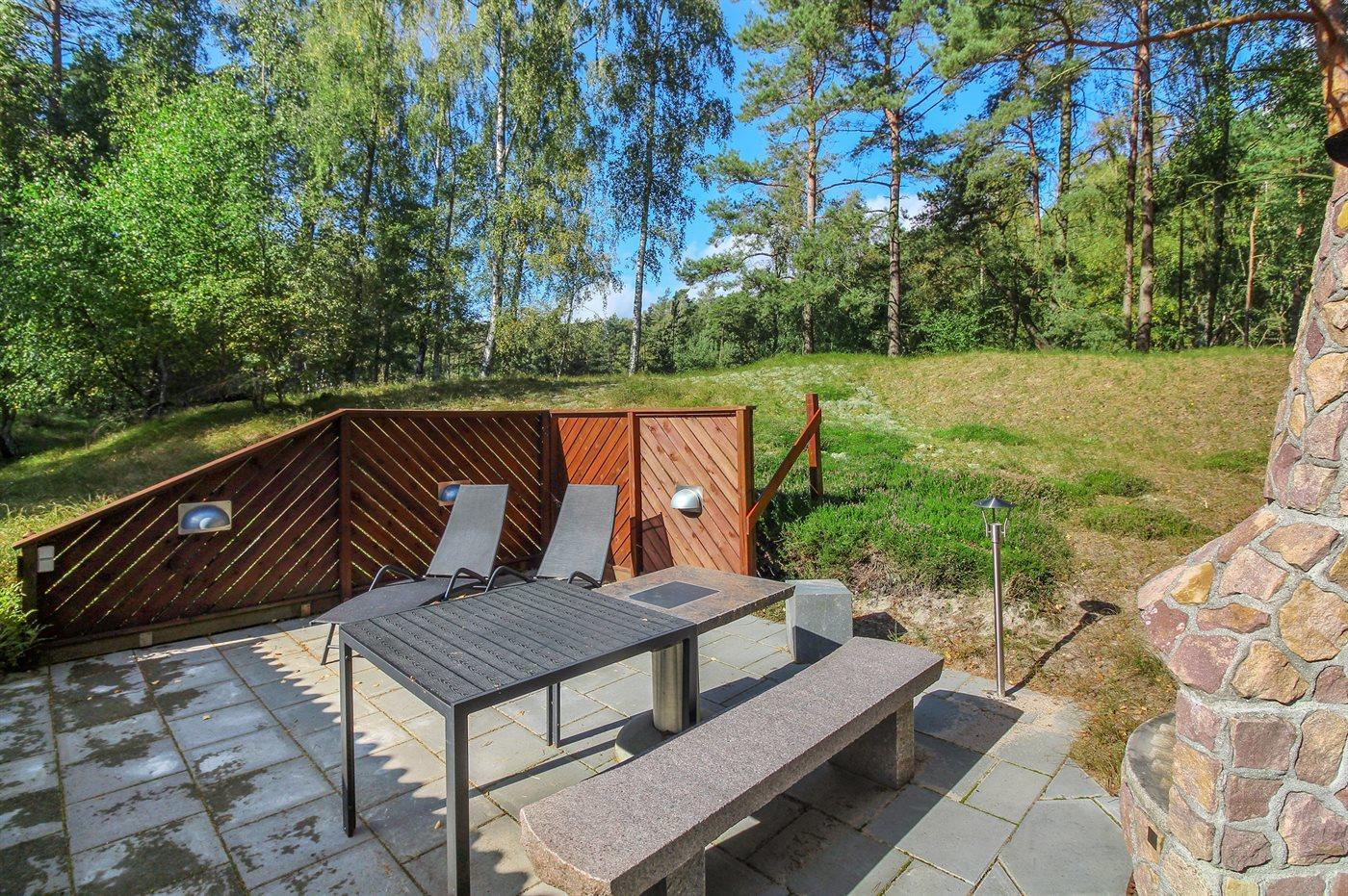 Dieses exklusive und geräumige Ferienhaus aus Holz von 1998 liegt auf einem herrlichen, leicht bepflanzten Naturgrundstück mit Kiefern und Birken, nur 900 m vom weißen Badestrand Dueoddes entfernt.