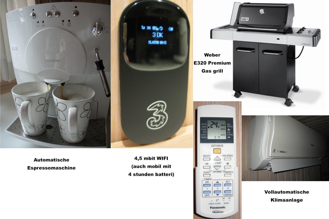 Mit einer phantastischen Lage im Herzen von Dueodde liegt dieses einzigartige von einem Architekten gezeichnete Ferienhaus aus Holz. Das Haus ist 1990 auf einem völlig ungestörten und windgeschützten Naturgrundstück am Ende einer Sackgasse an einer Düne gebaut - nur 300 m vom breiten, weißen Sandstrand entfernt. Das sehr schöne und besonders gepflegte Ferienhaus ist geschmackvoll eingerichtet und das Licht von den großen Fenstern trägt zu der richtigen Ferienstimmung bei. Vom sehr großen Wohnzimmer gibt es direkten Zugang zu den großen Holzterrassen, die einen Teil des Hauses umgeben. Im Wohnzimmer gibt es Nintendo Wii, großes Flatscreen-TV mit digitalen Sendern - sowohl deutsche als auch skandinavische, DVD-Spieler, CD-Spieler sowie Surroundsound-Anlage mit Subwoofer. Die eine Wand im Wohnzimmer wird durch einen schönen Kamin dominiert, der zu der gemütlichen Atmosphäre im Haus beiträgt. Eine energiegerechte Klimaanlage sichert darüber hinaus ein gutes Raumklima. Die Wände und Decken sind mit hell gebeiztem Holz verkleidet. Einige der Böden sind mit beheizbarem Klinkern belegt. Das Haus hat 2 Badezimmer - das eine mit 2-Pers. Whirlpool und einer guten Sauna. In der Küchenabteilung gibt es u.a. Geschirrspüler, Ceran-Kochfeld, Mikrowelle, Umluftofen und Tiefkühlgerät. Das phantastische Ferienhaus hat 4 Schlafzimmer, davon 2 mit Doppelbetten, 1 Zimmer mit 2 Einzelbetten und 1 Zimmer mit Etagenbett. Alle Betten sind von guter Qualität und für Erwachsene geeignet (2 m lang). Alle Zimmer haben viel Schrankplatz und kleine Arbeitstische. 2 zusätzliche TVs vorhanden. Darüber hinaus steht ein Büro mit kostenloser kabelloser Internetverbindung (eigener Computer muss mitgebracht werden), Drucker/Scanner sowie verschiedenem Bürobedarf zur Verfügung. Für die kleinsten Feriengäste stehen Kinderhochstuhl, Schaukel und Trampolin zur Verfügung. In der Garage sind Waschmaschine und Wäschetrockner vorhanden. Eben dieses Ferienhaus wird mit sowohl seiner Schönheit und Qualität als auch die einzigartige Lage, einen sehr erholsamen Urlaub bei Dueodde anbieten können.