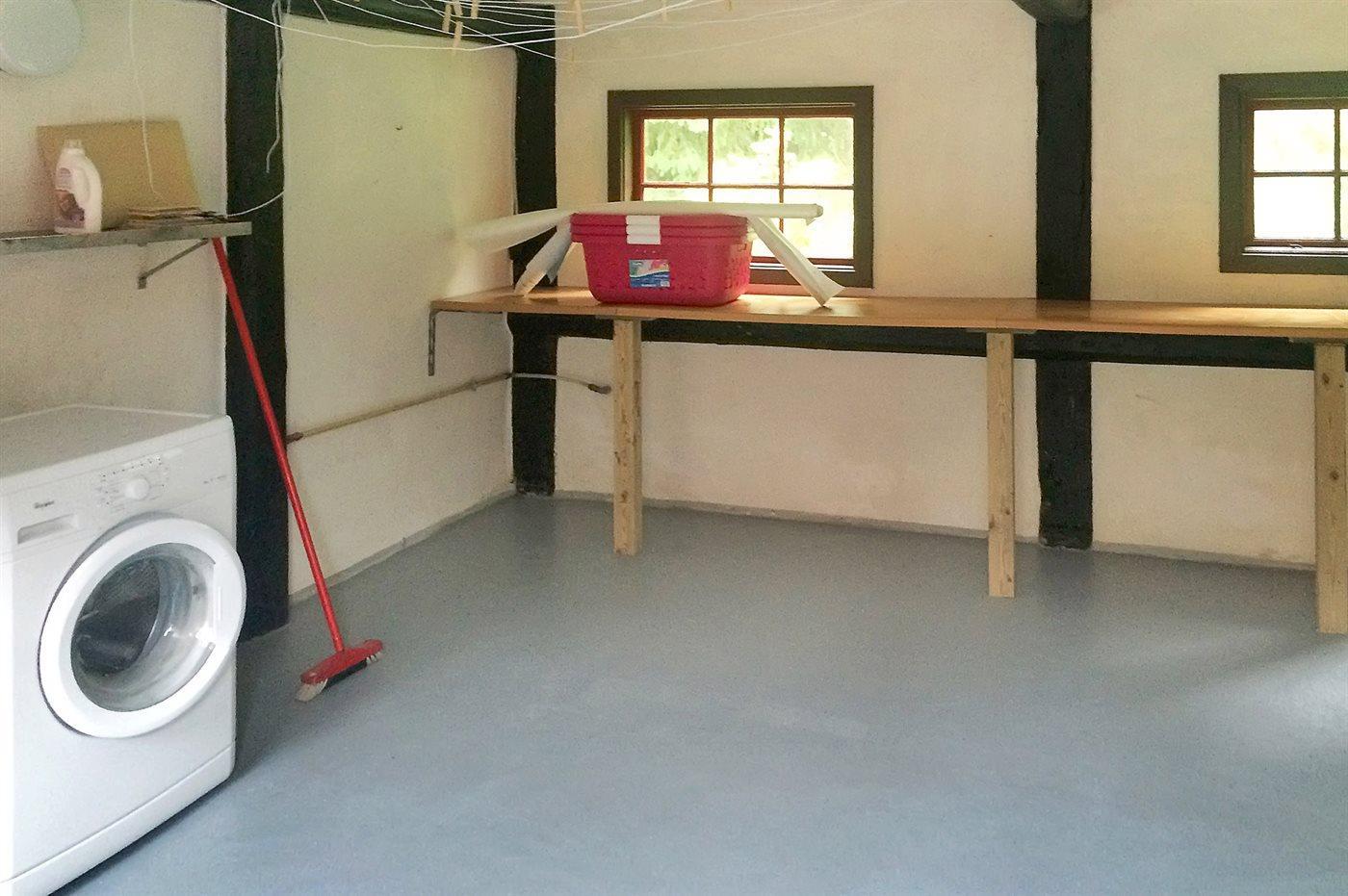 Vom Innenhof aus erreichst du den Hauswirtschaftsraum mit Waschmaschine. Dort findest du auch Auflagen und Kissen für alle Gartenmöbel.