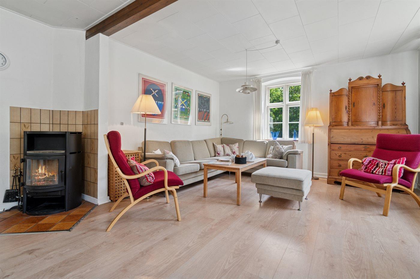 Die Küche ist zwar älteren Datums, aber mit allem ausgestattet, was du brauchst, um zehn Personen zu bewirten. Das große Wohnzimmer ist der zentrale Mittelpunkt des Hauses - mit gemütlichem Essbereich, Sitzecke und Kaminofen.