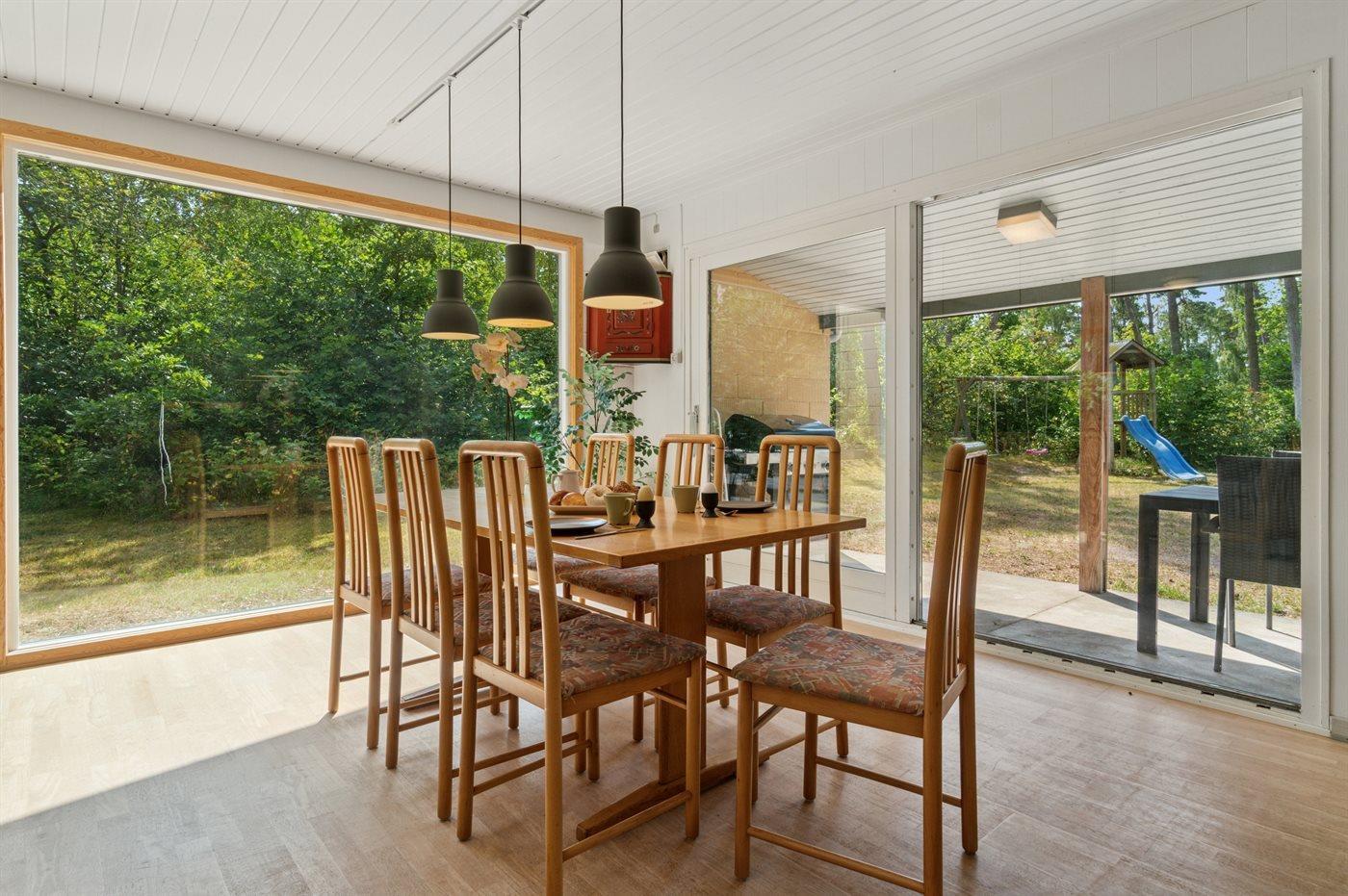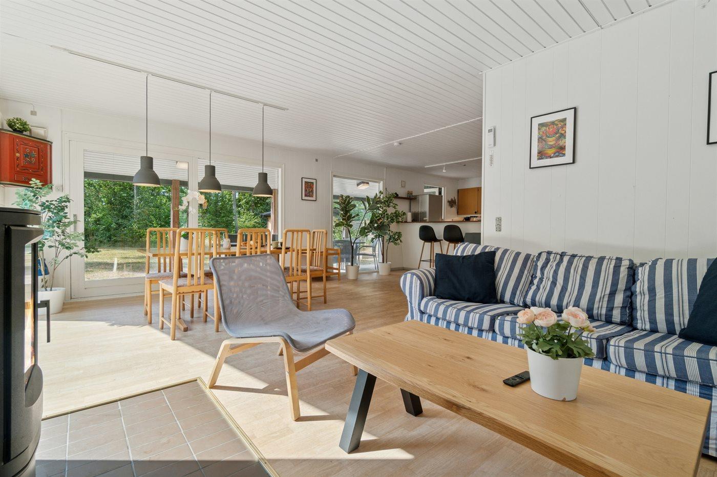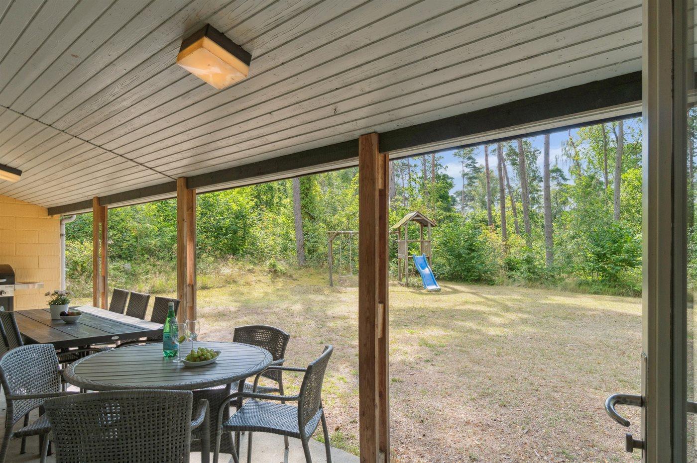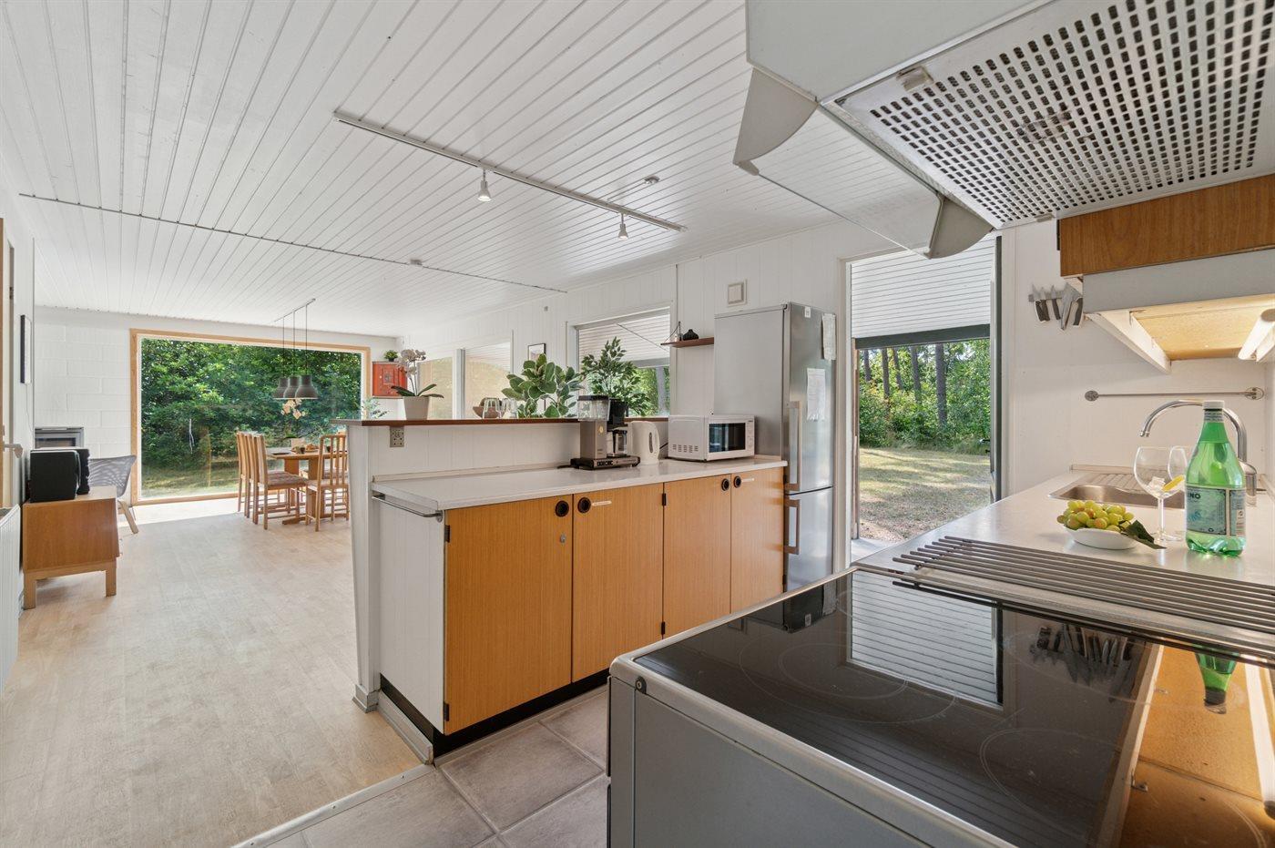 Dieses Ferienhaus liegt in einer ruhigen Gegend auf einem Naturgrundstück, das an ein Gebiet mit Bäumen grenzt – nicht weit vom schönen Sandstrand bei Dueodde entfernt.