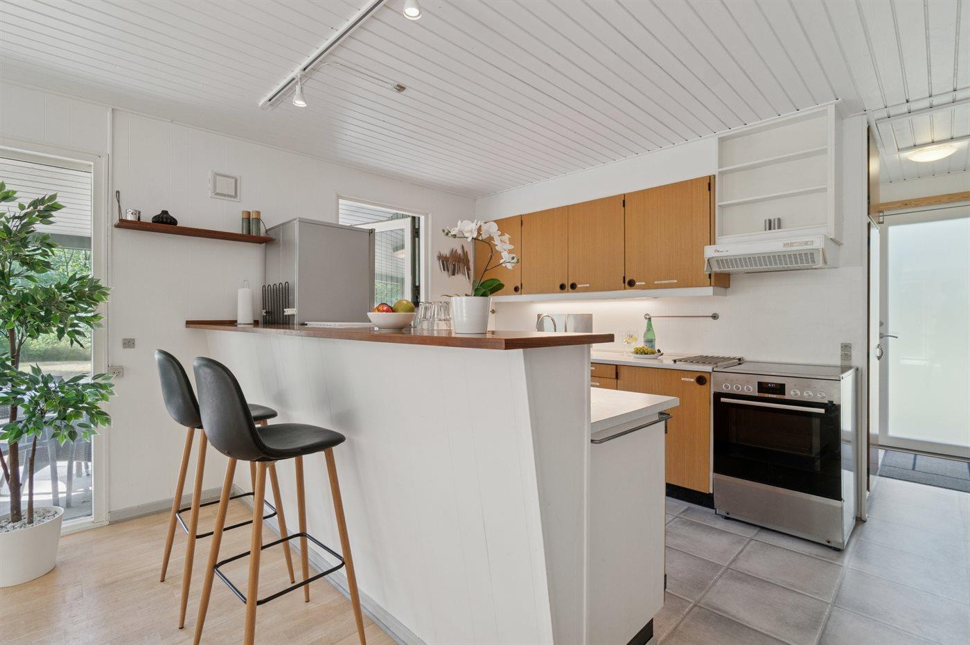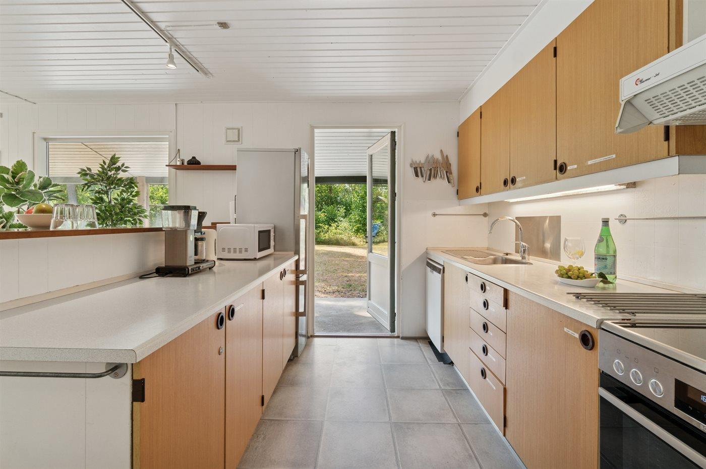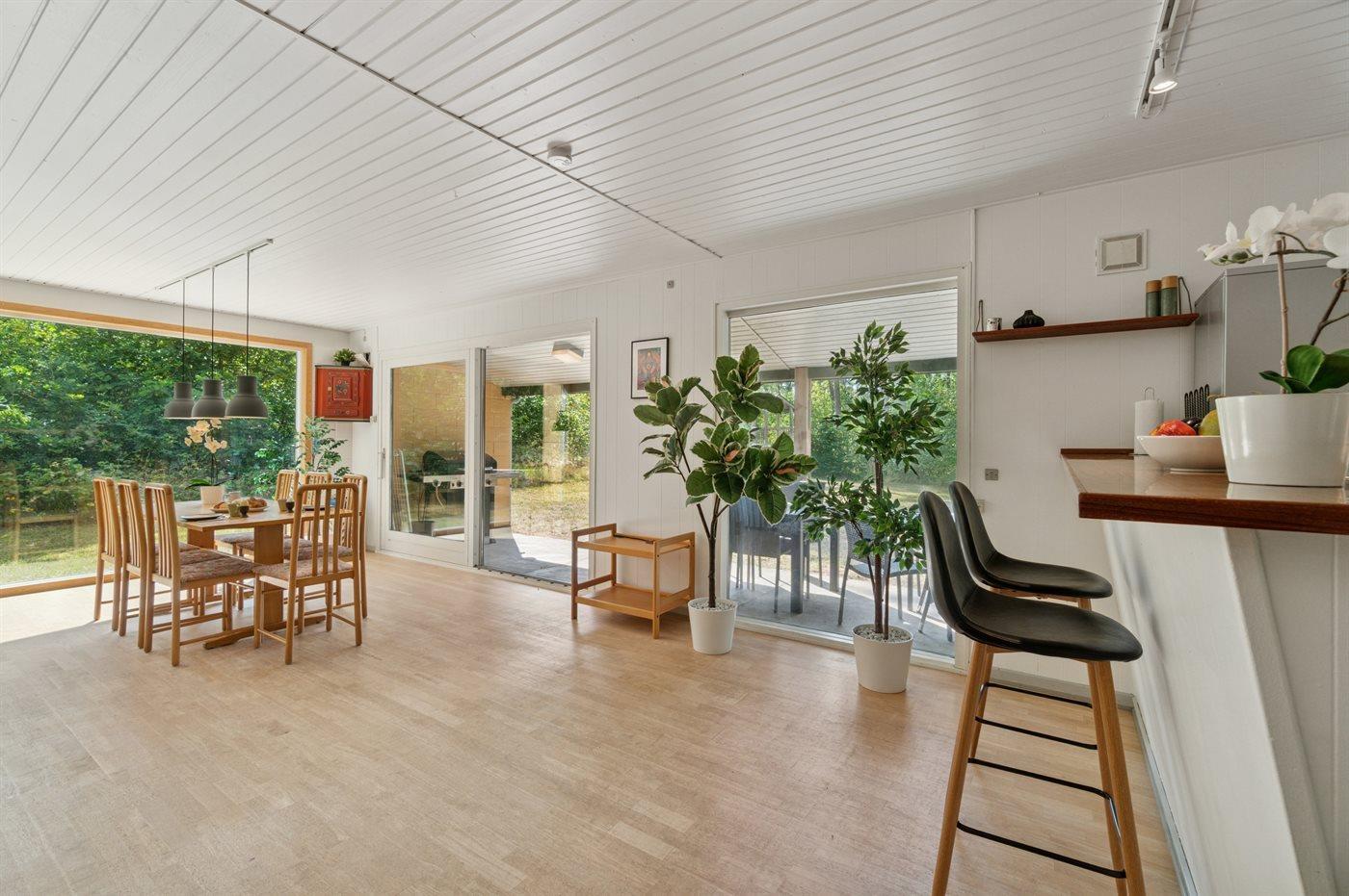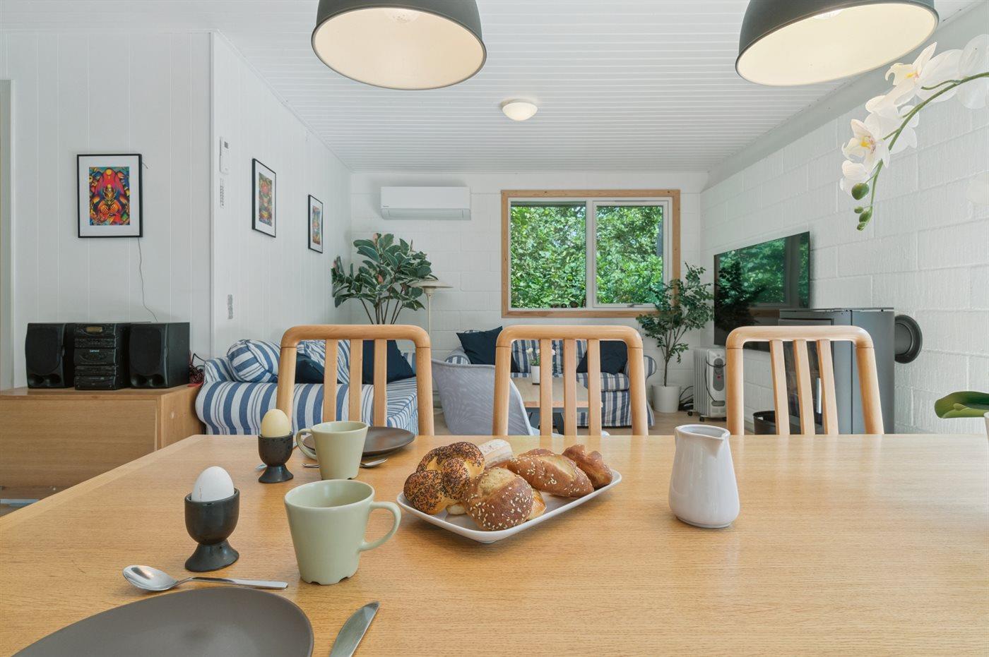 Dieses Ferienhaus liegt in einer ruhigen Gegend auf einem Naturgrundstück, das an ein Gebiet mit Bäumen grenzt – nicht weit vom schönen Sandstrand bei Dueodde entfernt.