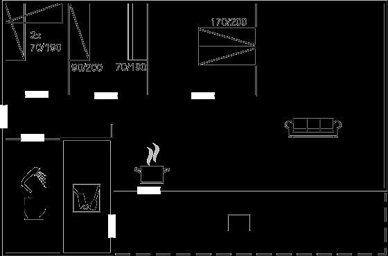Die Schlafplätze verteilen sich auf 3 Schlafräume. 2 Schlafplätze in einem Doppelbett.1 Schlafplatz in einem Einzelbett. 4 Schlafplätze in Etagenbetten.