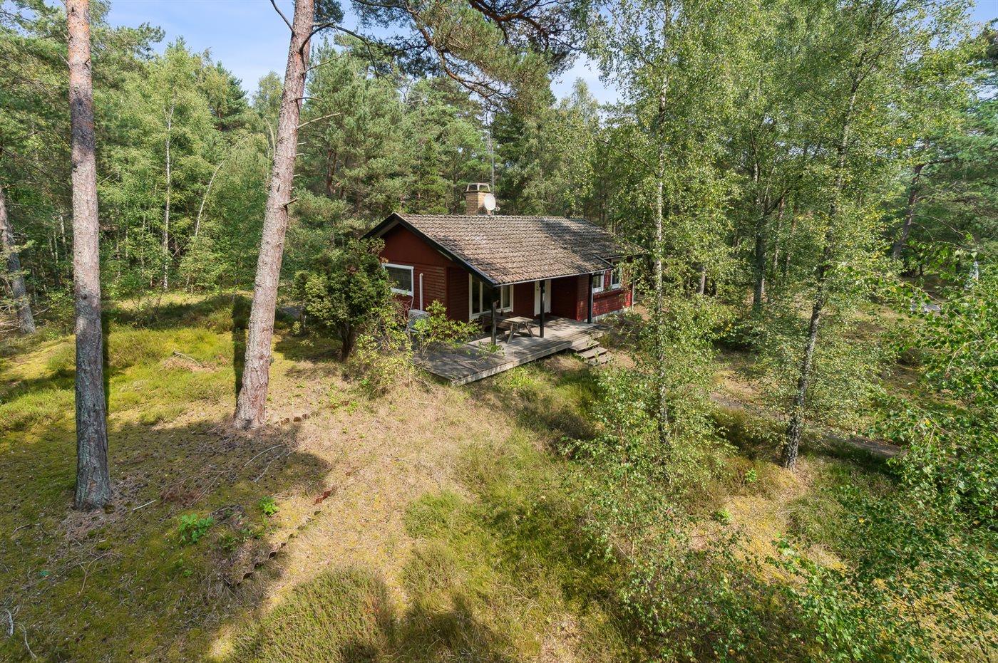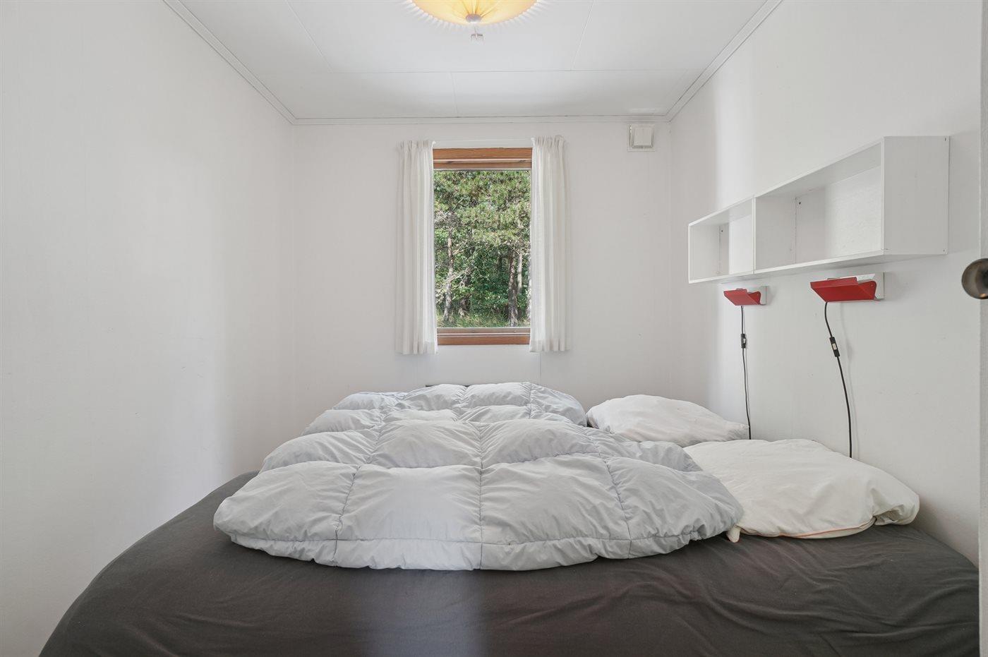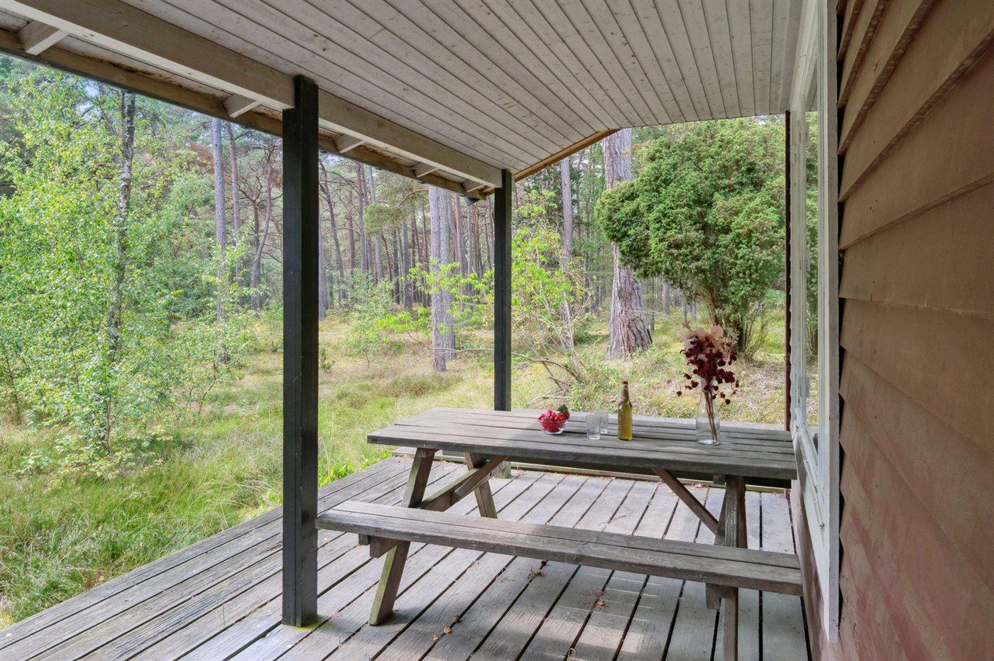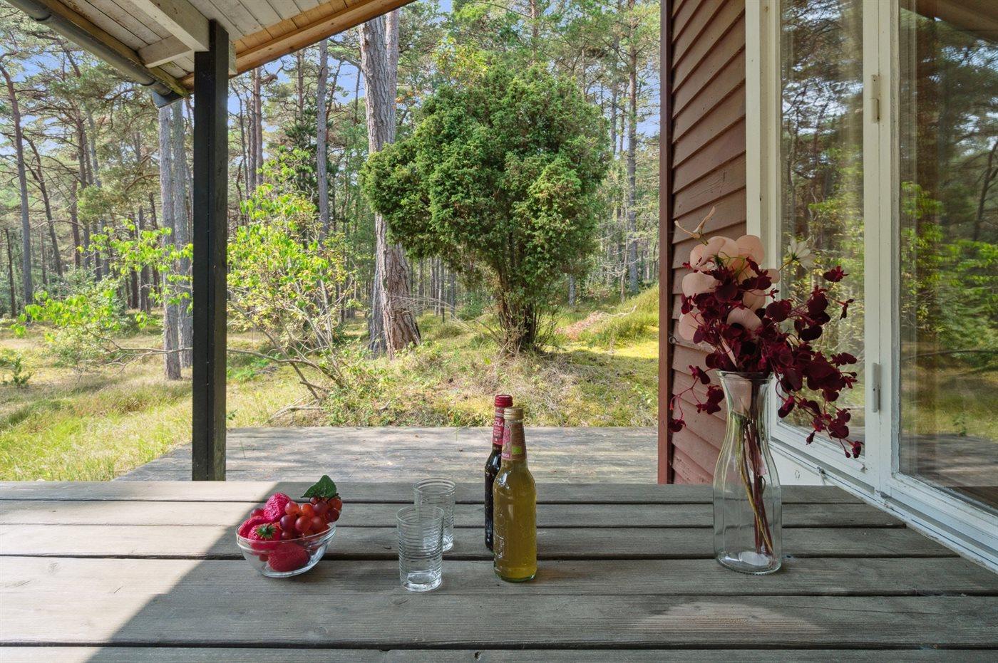 Dieses rot gestrichene Ferienhaus ist von Holzterrassen umgeben, und bietet dir daher die Moglichkeit die Sonne sowohl morgens als auch abends in Ruhe zu genießen. Du findest das Haus im Herzen von Dueodde - auf einem großen und schönen, von Bäumen bewachsenen Naturgrundstück zusammen mit 2 anderen Häusern.